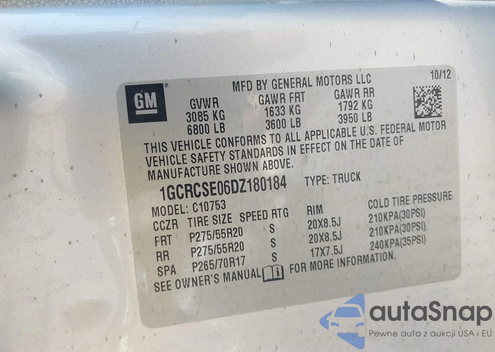 • VIN 1GCRCSE06DZ180184