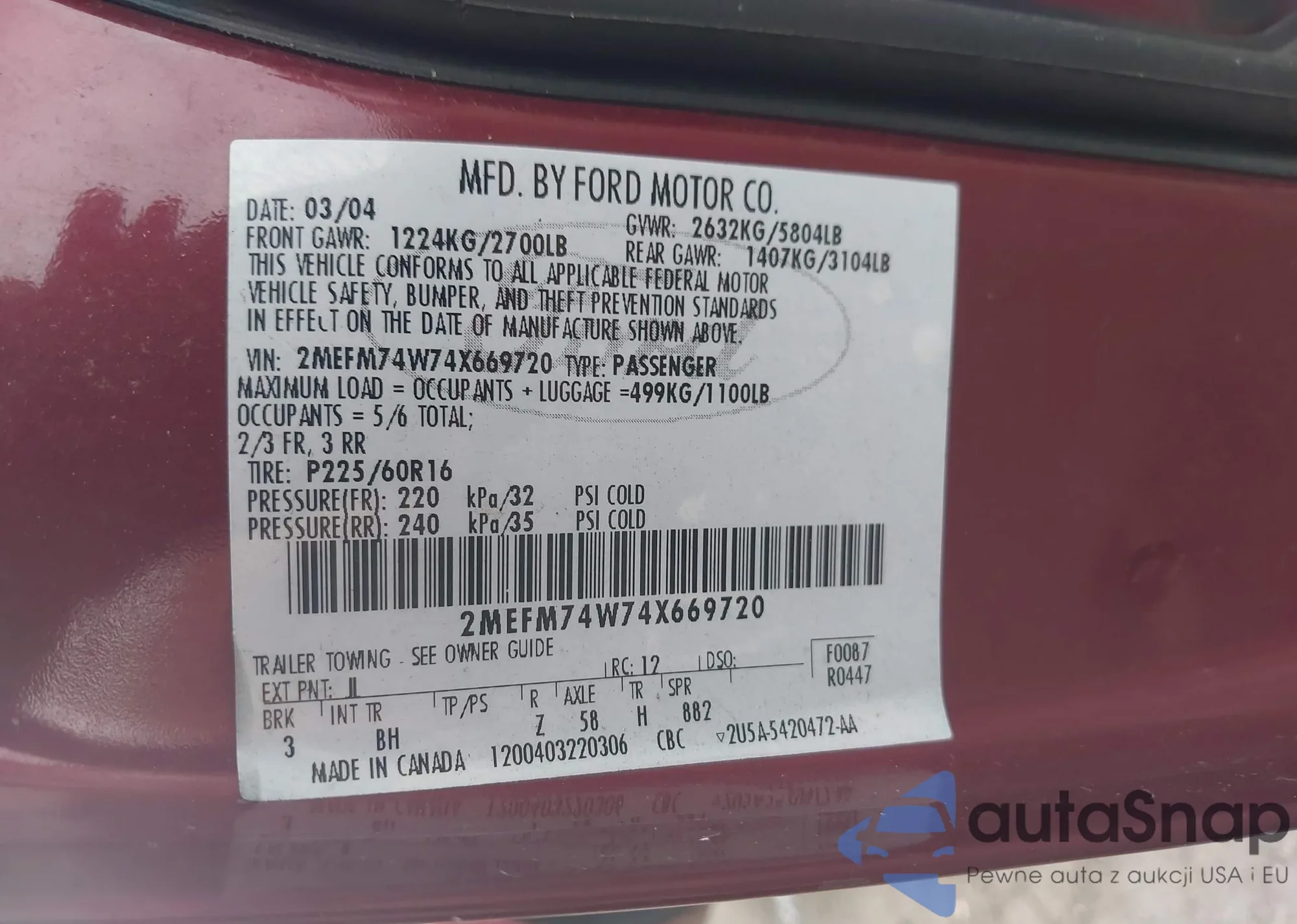 • VIN 2MEFM74W74X669720
