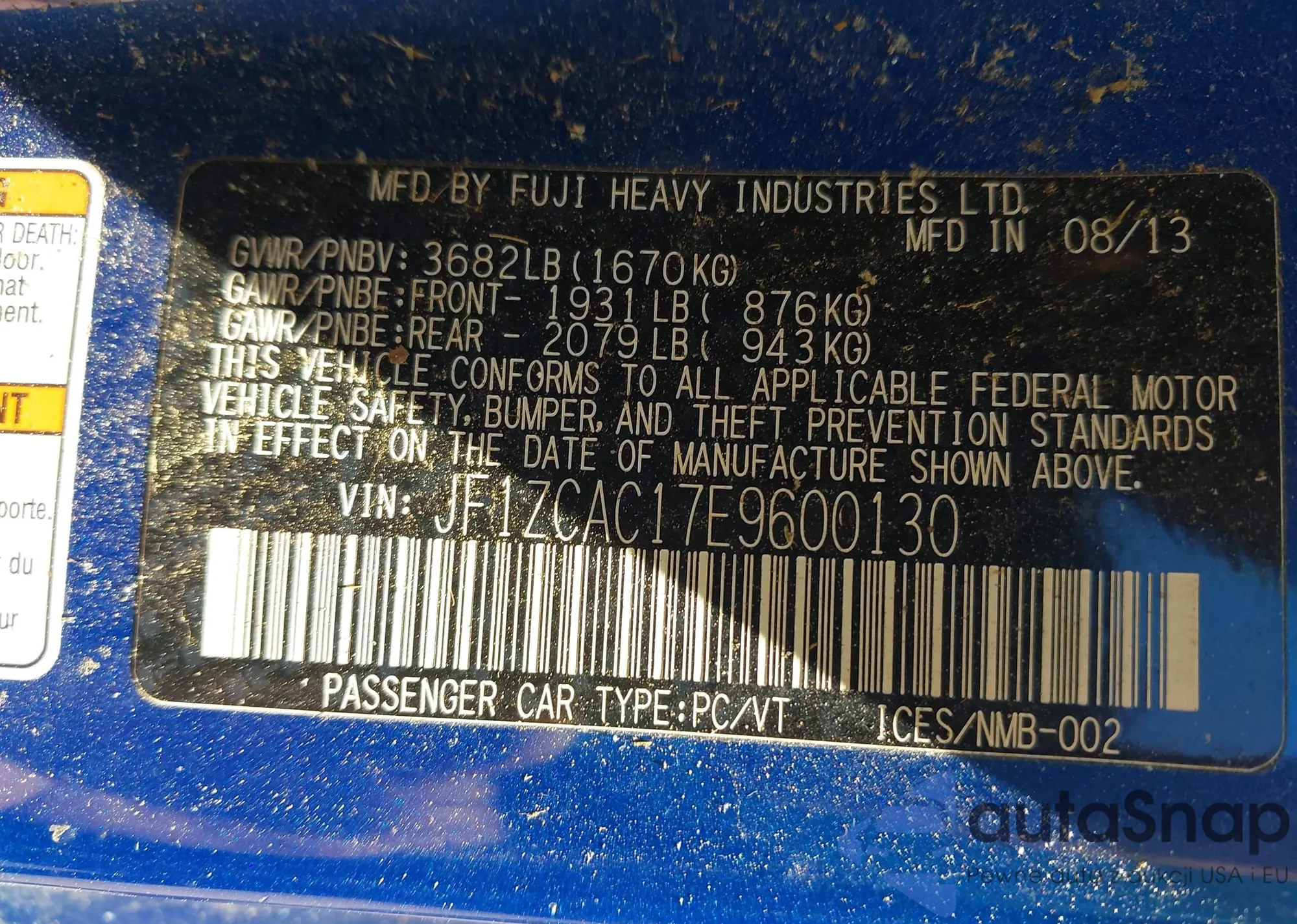 • VIN JF1ZCAC17E9600130
