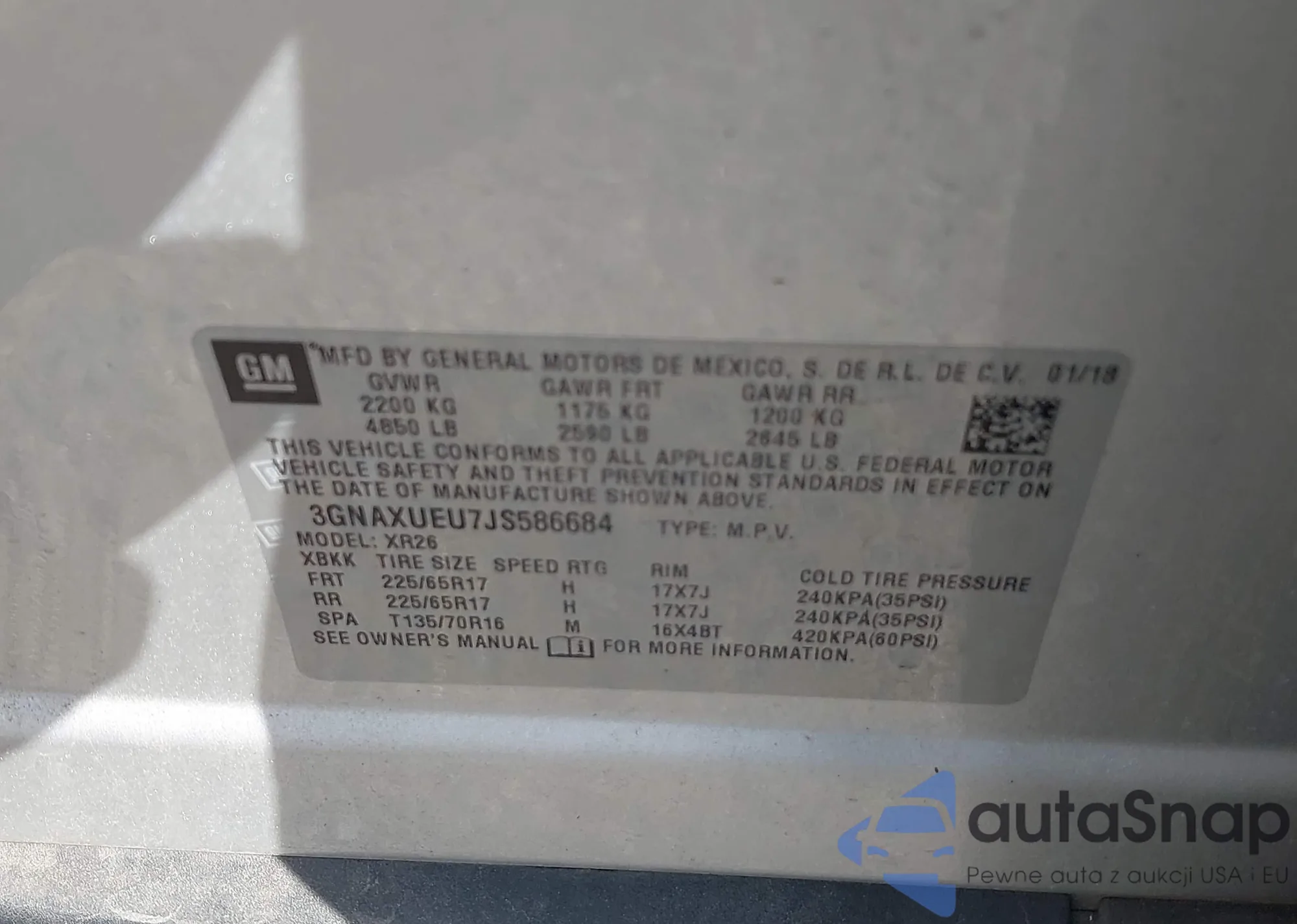 • VIN 3GNAXUEU7JS586684