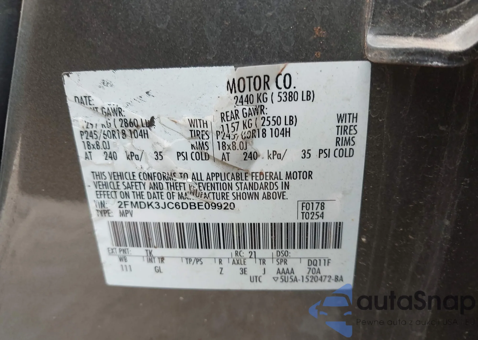 • VIN 5TFPX4EN7DX015680