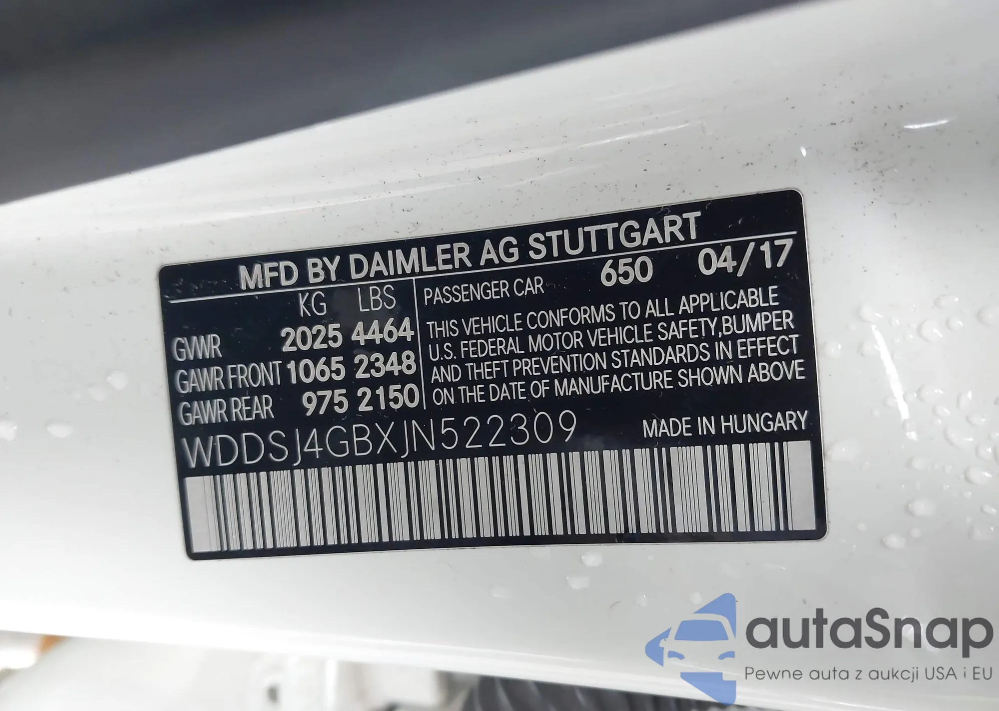 • VIN WDDSJ4GBXJN522309