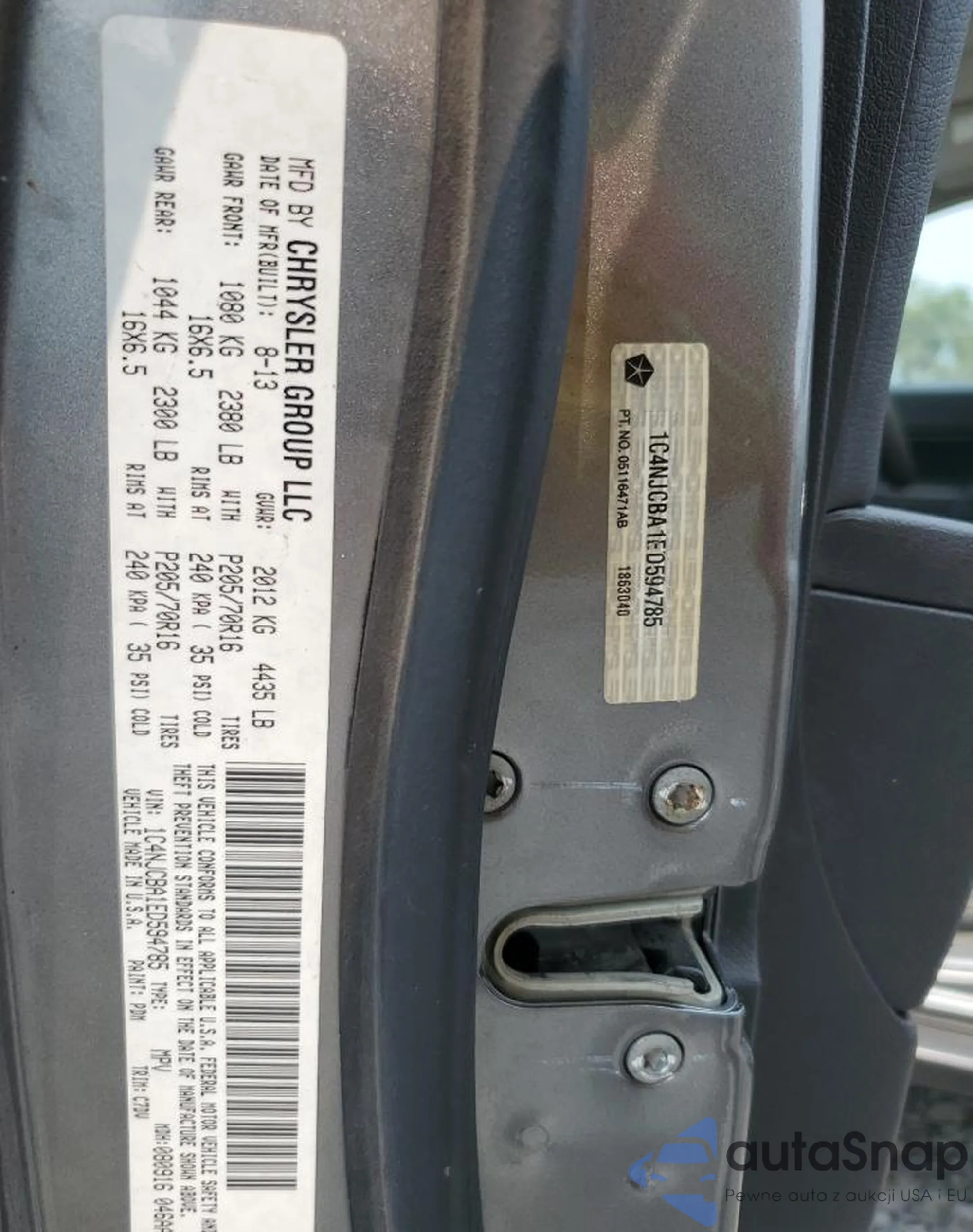 • VIN 1C4NJCBA1ED594785