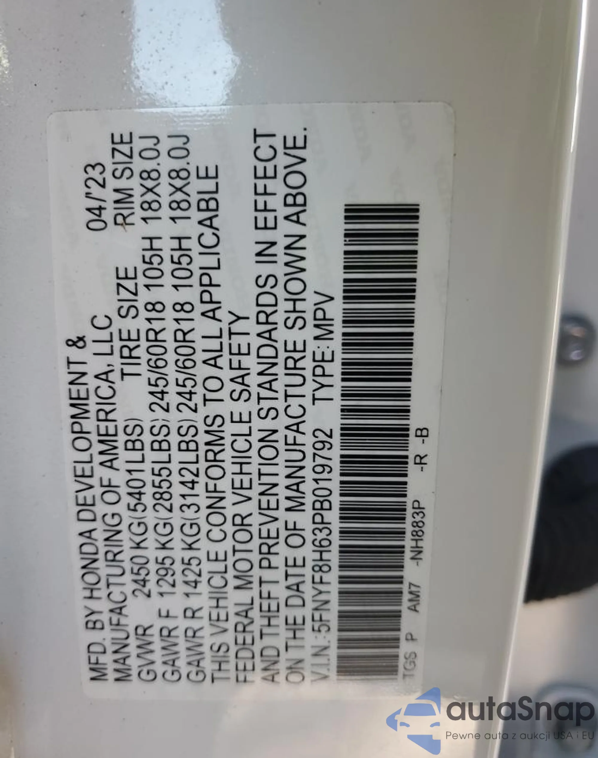 LOT: 55360235 VIN: 1G1PF5S99B7266884