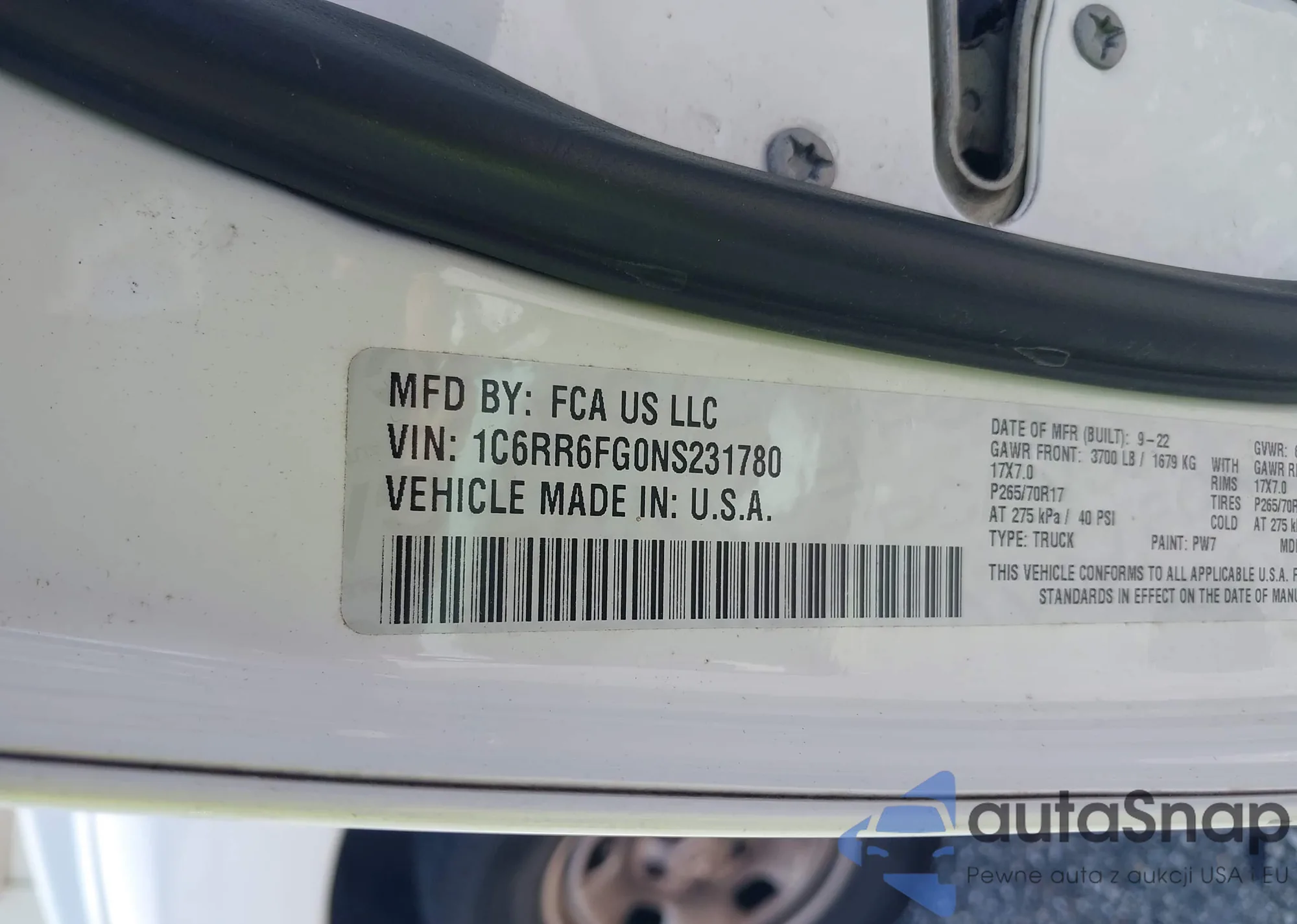 • VIN 1C6RR6FG0NS231780