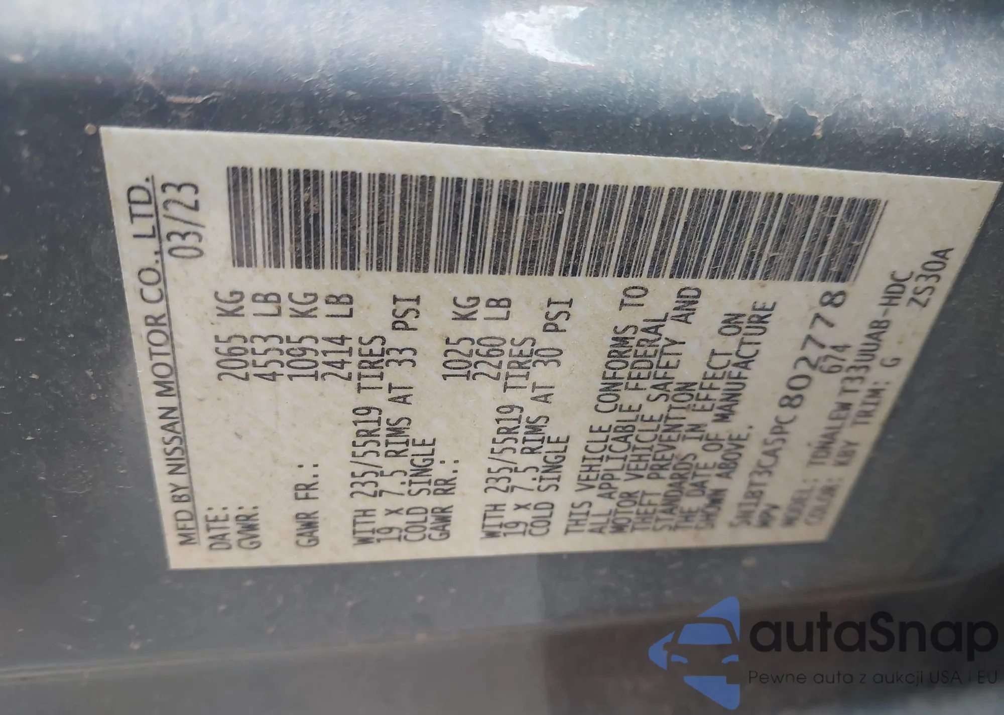 LOT: 42184795 VIN: 5N1BT3CA5PC802778