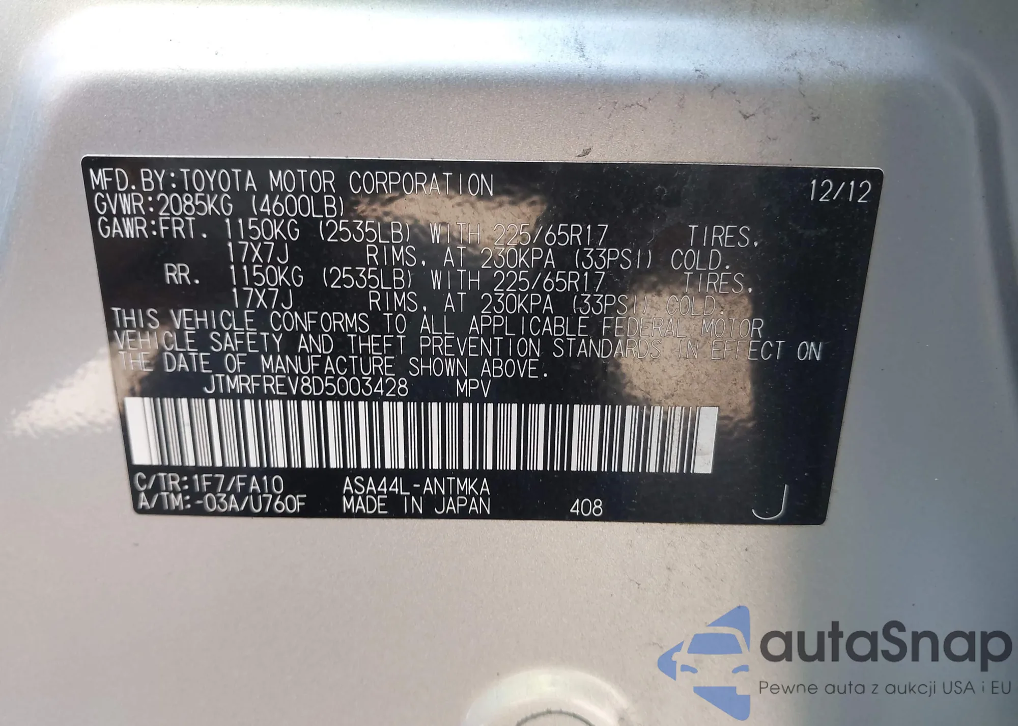 • VIN 5N1BT3CA5PC802778