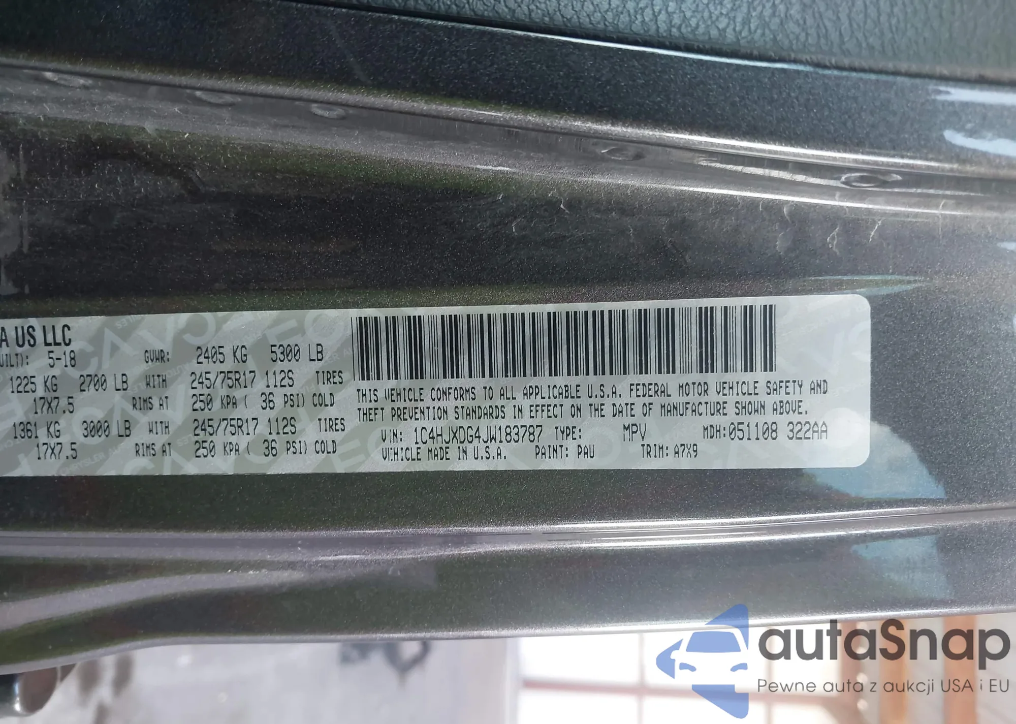 • VIN 1C4HJXDG4JW183787