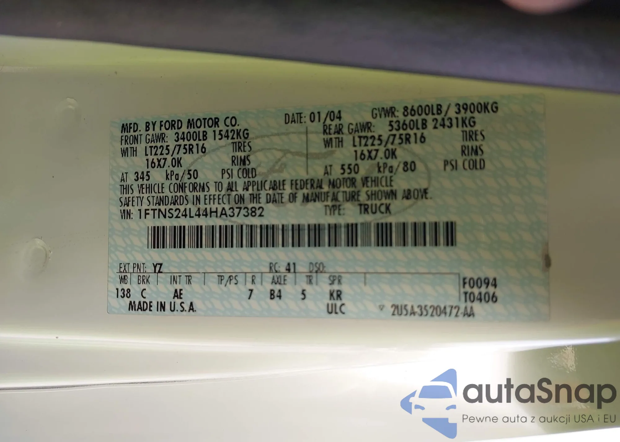 LOT: 43620509 VIN: 1FTNS24L44HA37382