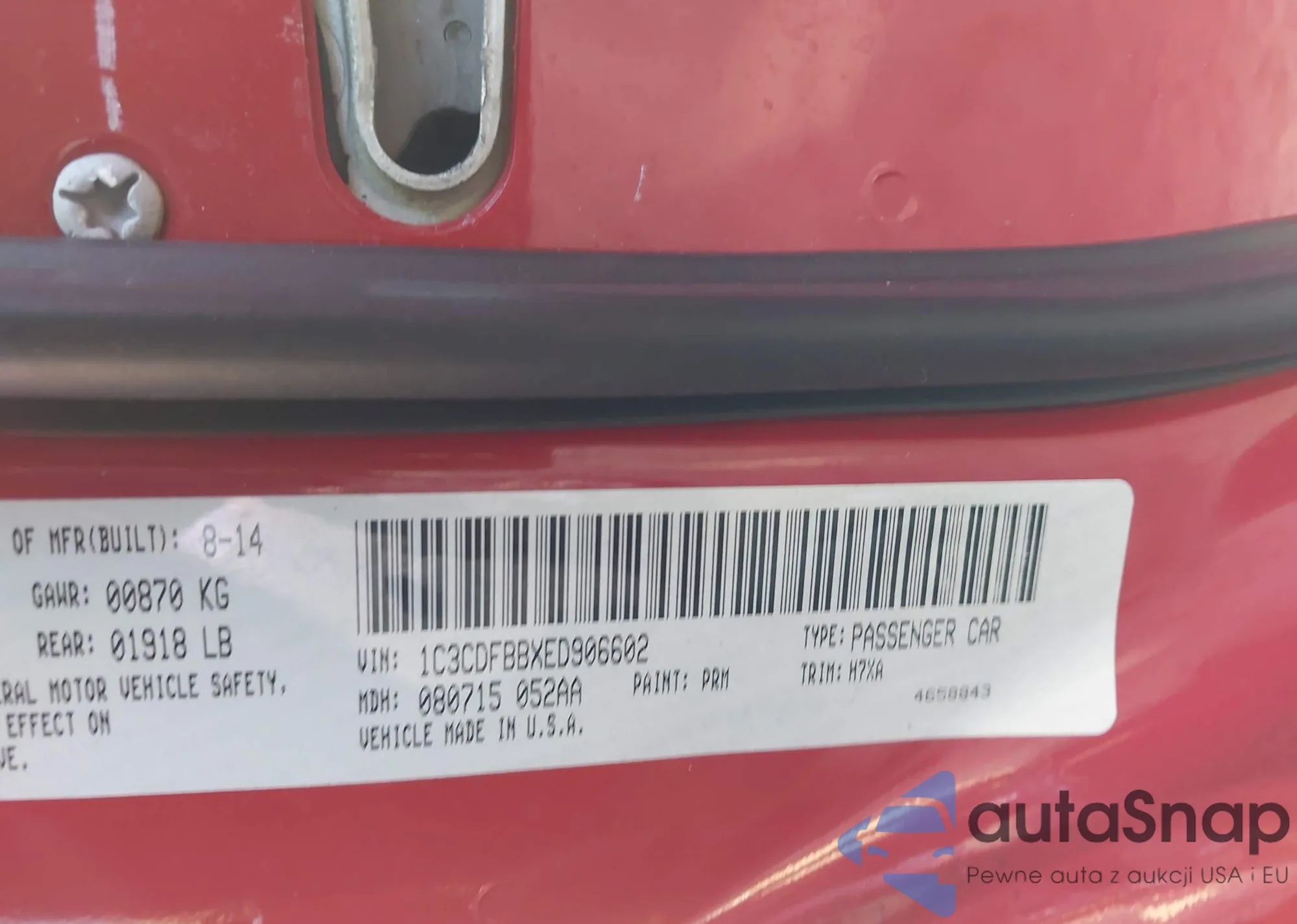 LOT: 43798729 VIN: JTDKN3DU4E0389483
