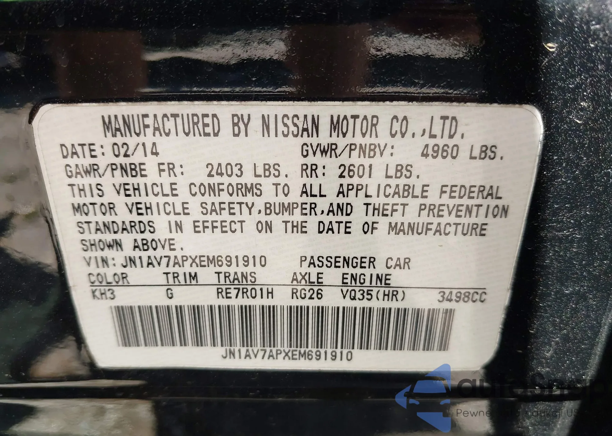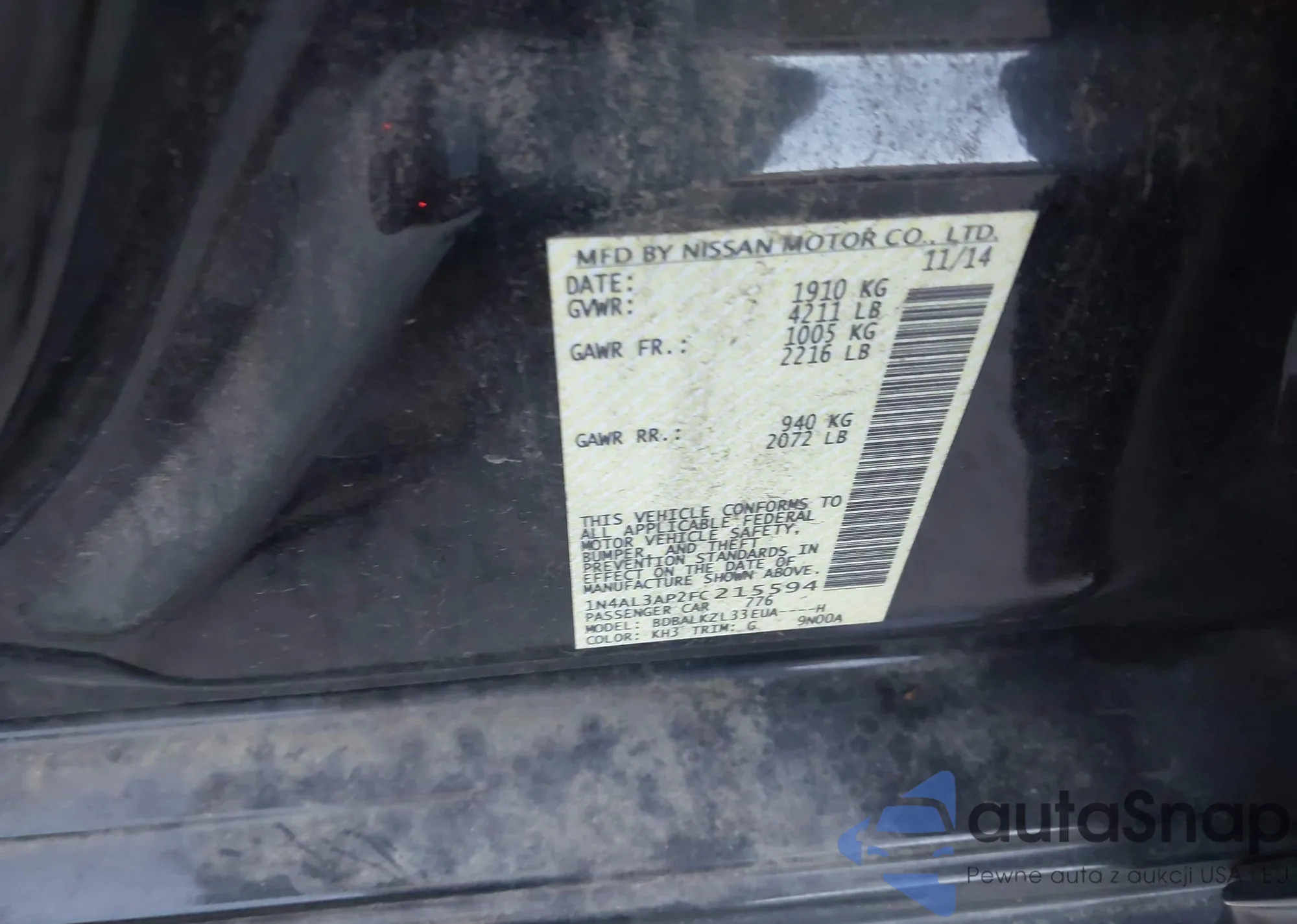 LOT: 43502307 VIN: 1N4AL3AP2FC215594