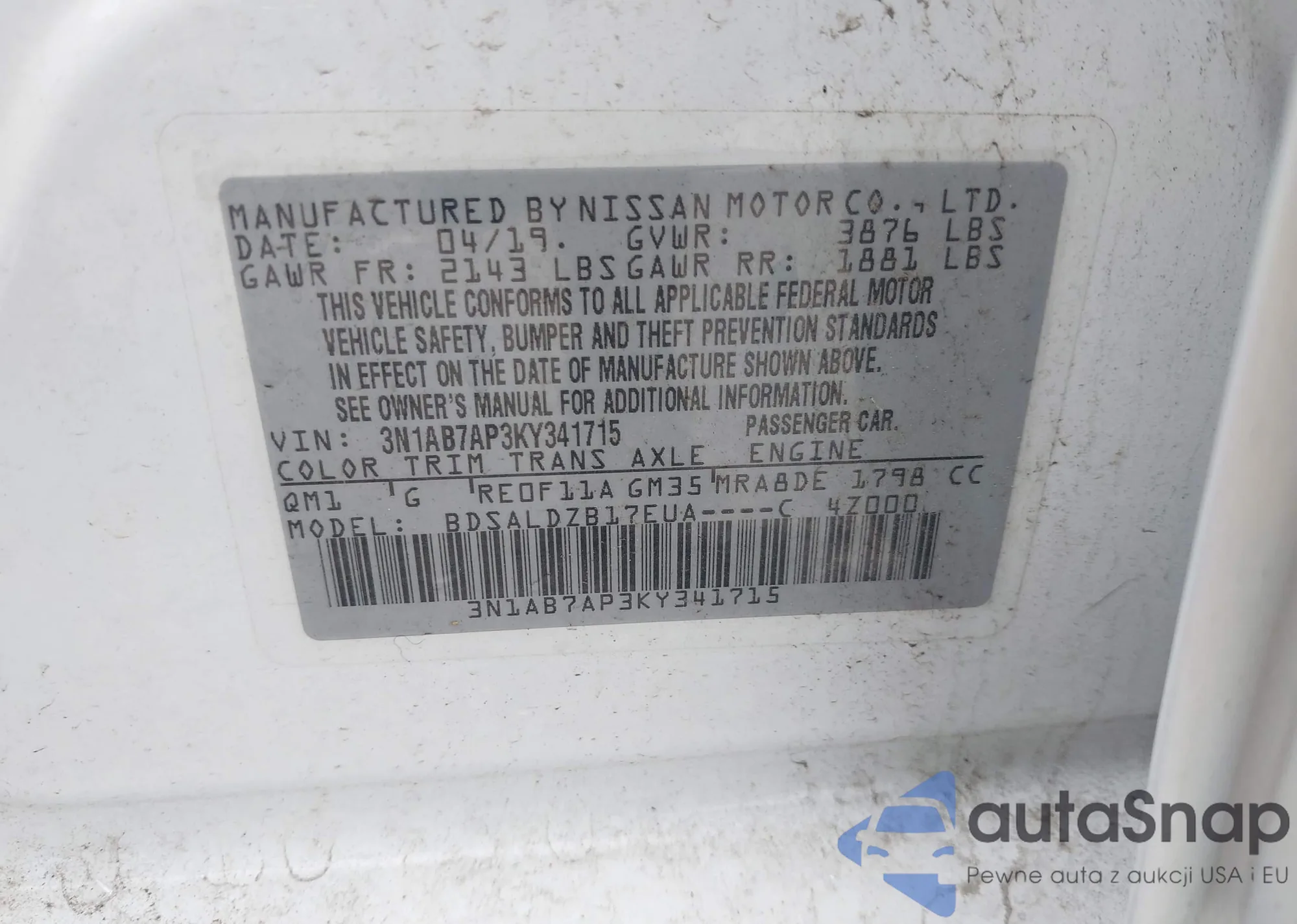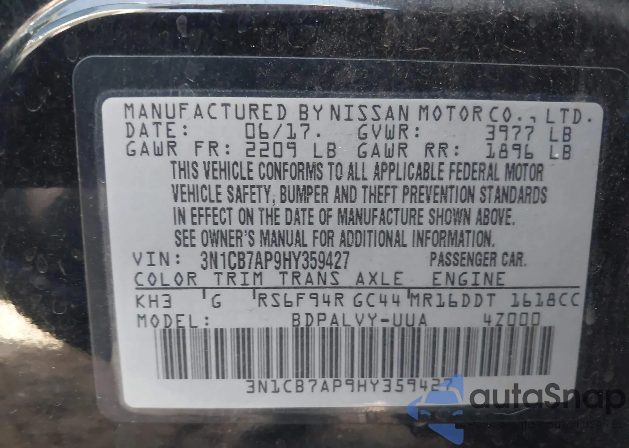 LOT: 42317391 VIN: 3N1CB7AP9HY359427