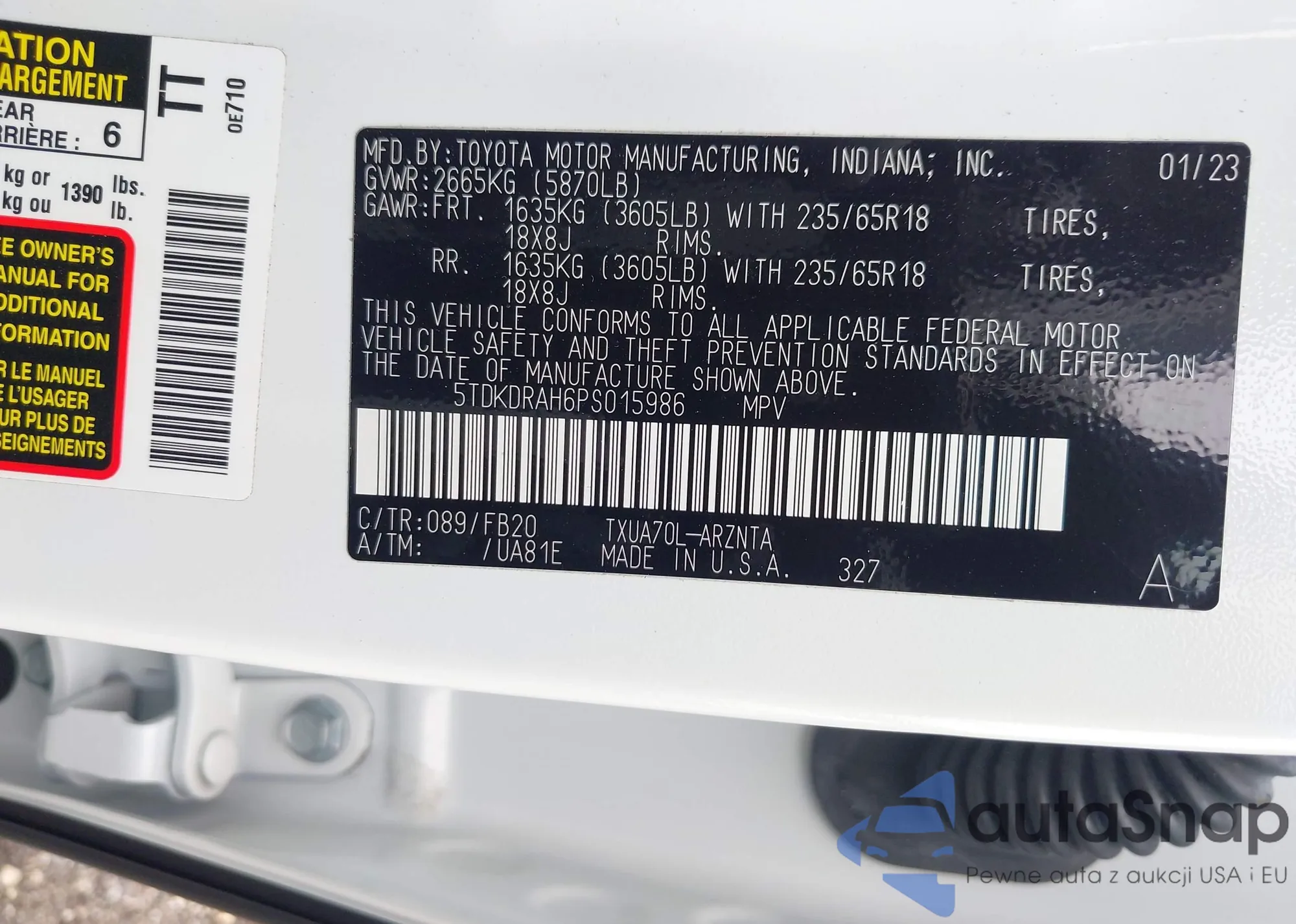 LOT: 42932886 VIN: 5TDKDRAH6PS015986