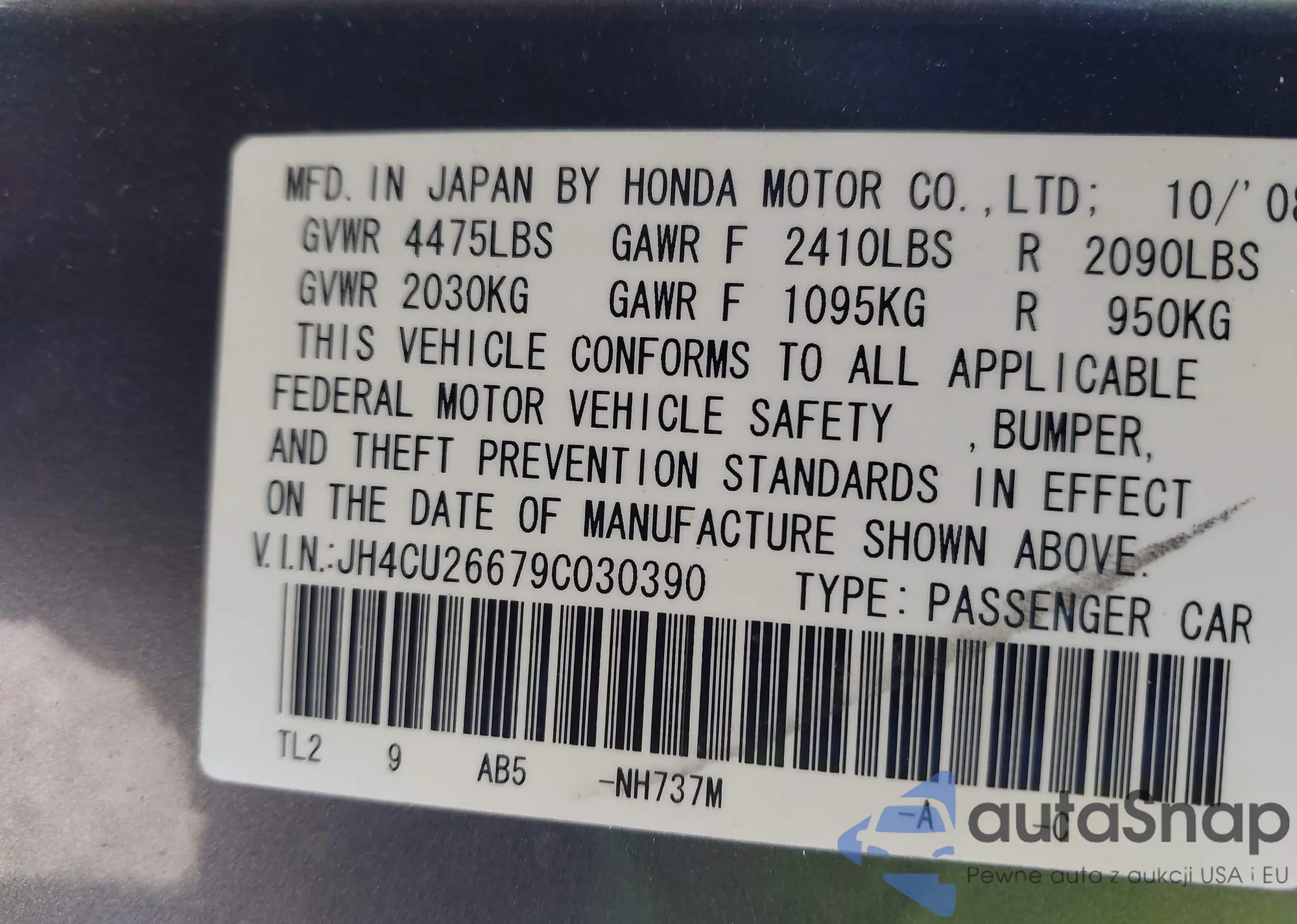 LOT: 43470467 VIN: JH4CU26679C030390
