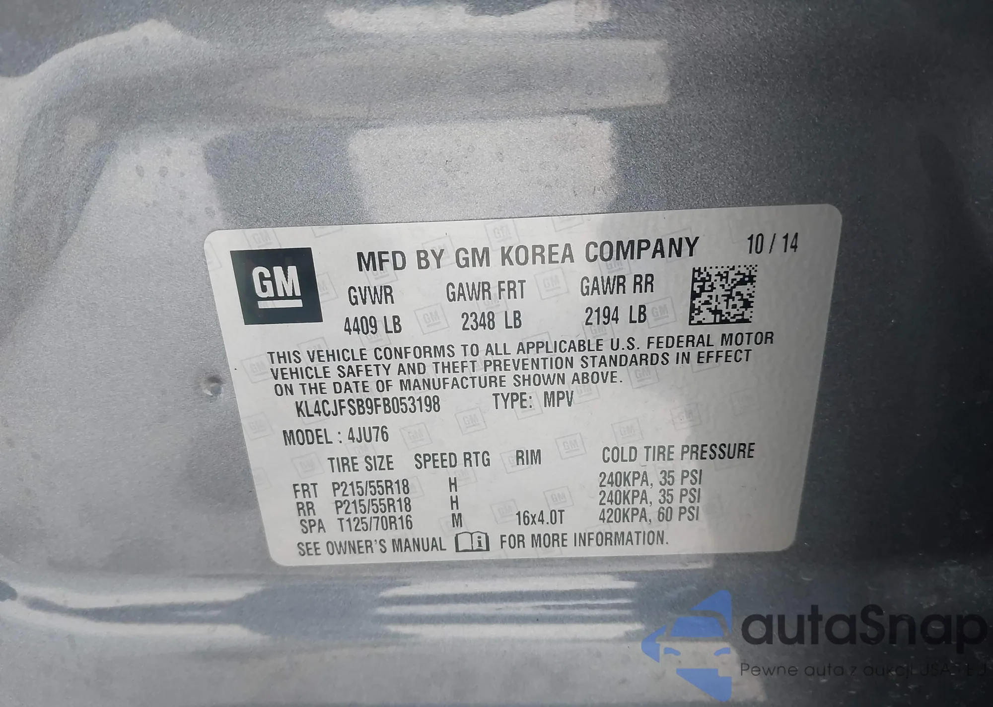 LOT: 43316077 VIN: 1GKKNWLS4KZ164400