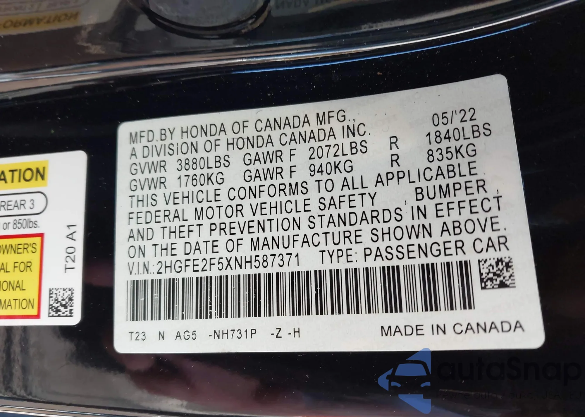 • VIN 1HGCV3F52LA002450