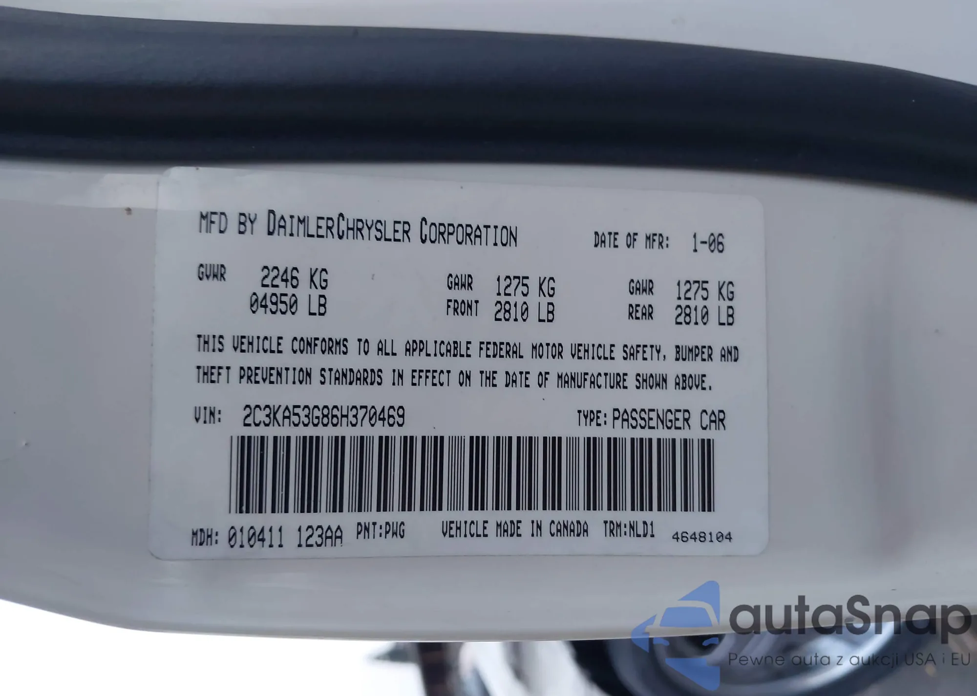 • VIN 2A4RR5DG6BR716177