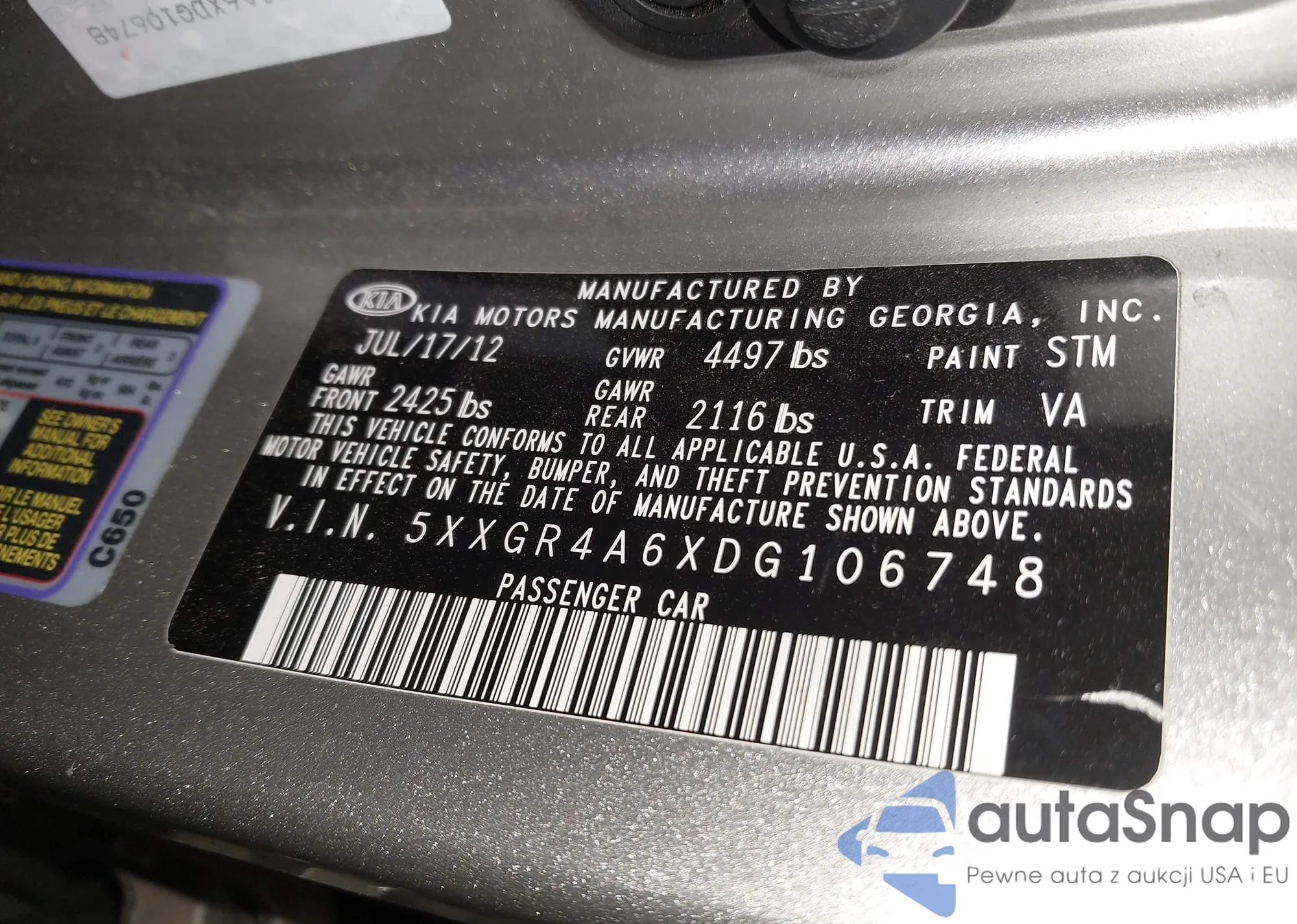 LOT: 43325773 VIN: 5XXGR4A6XDG106748