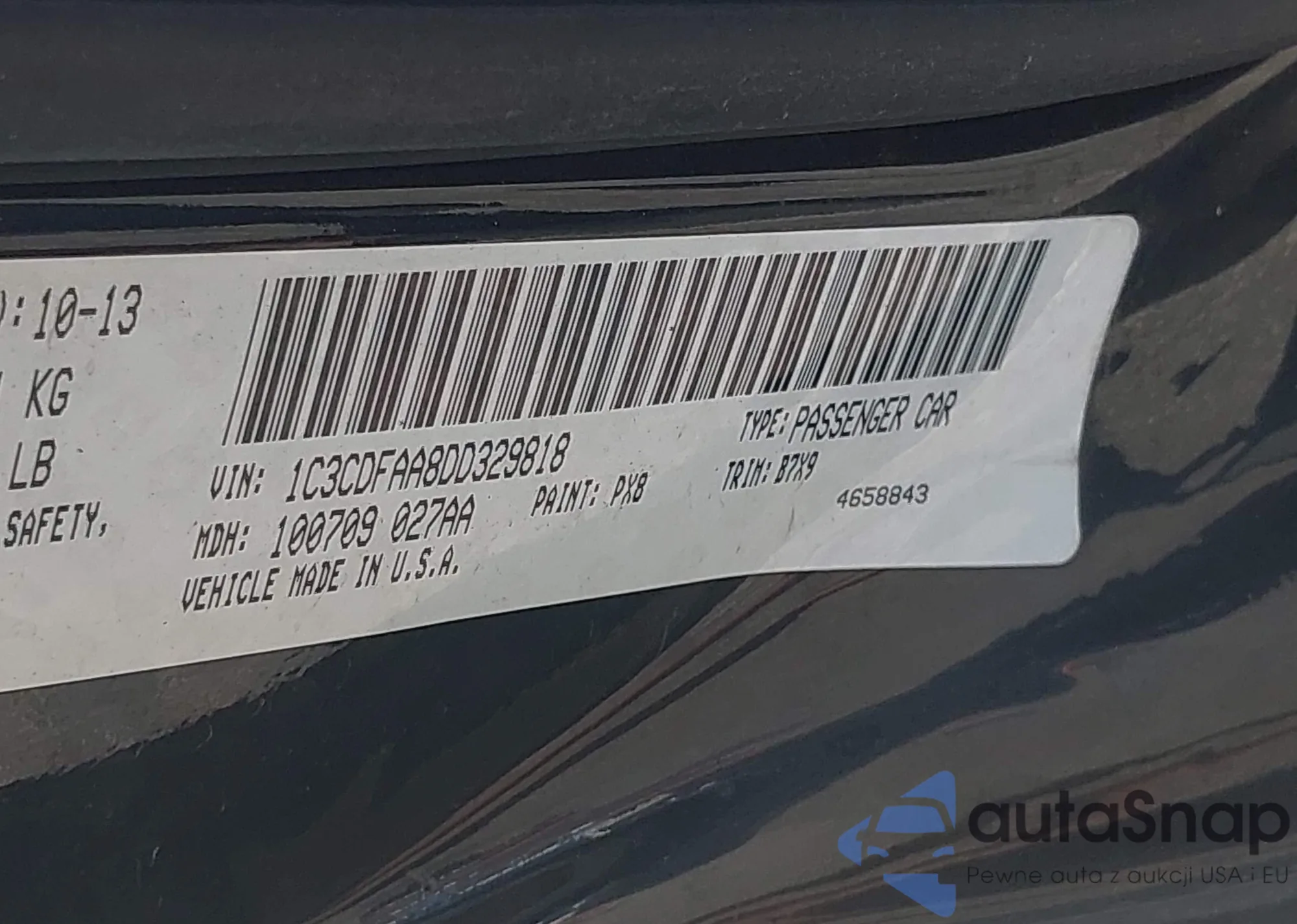 • VIN 1C3CDFAA8DD329818