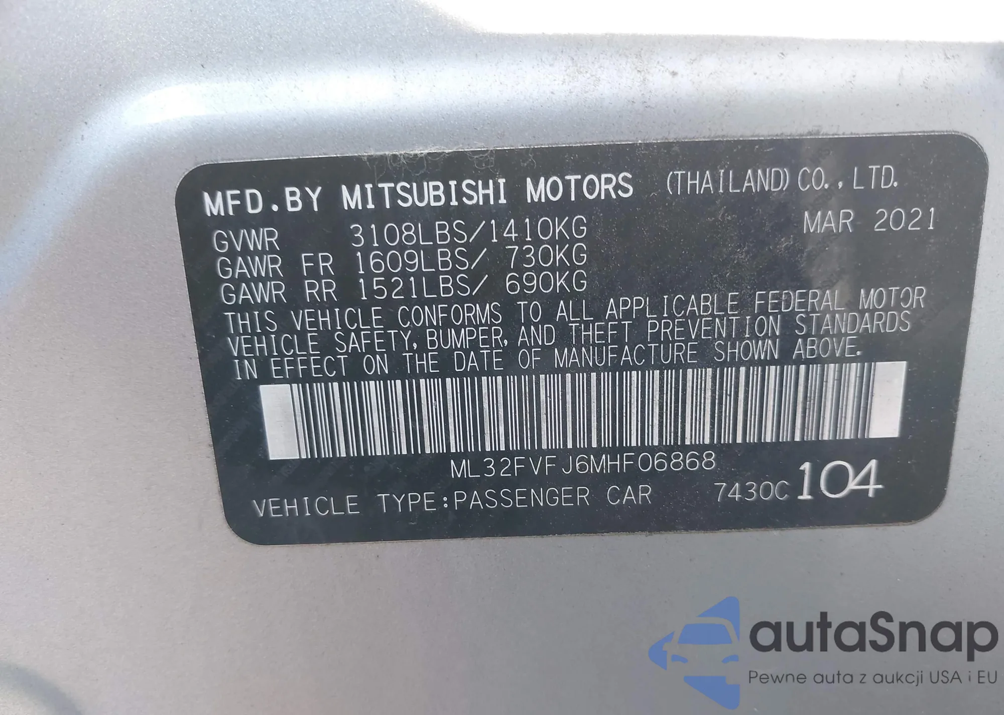 • VIN ML32FVFJ6MHF06868