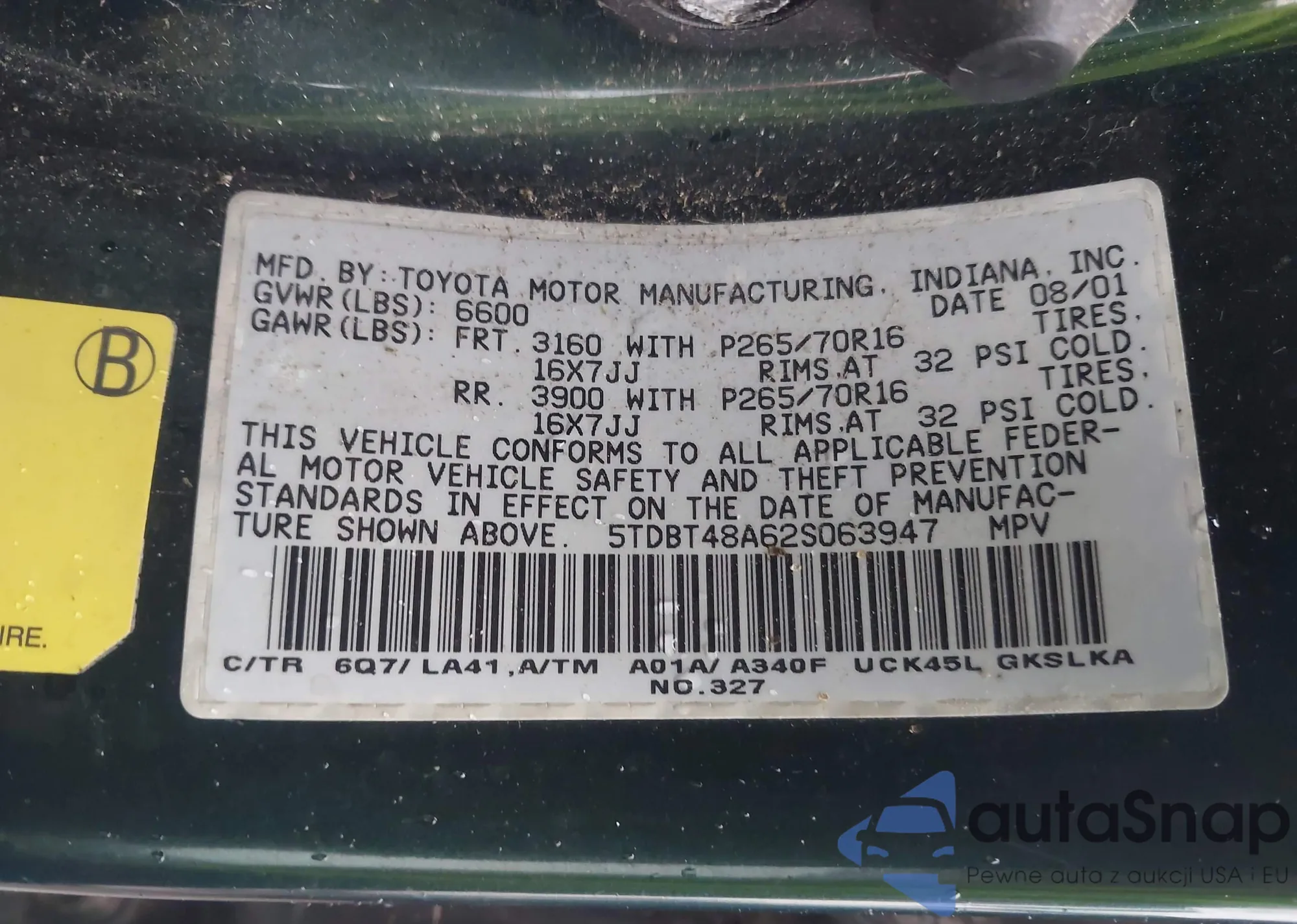 LOT: 43452347 VIN: KNAE45LC3L6079403