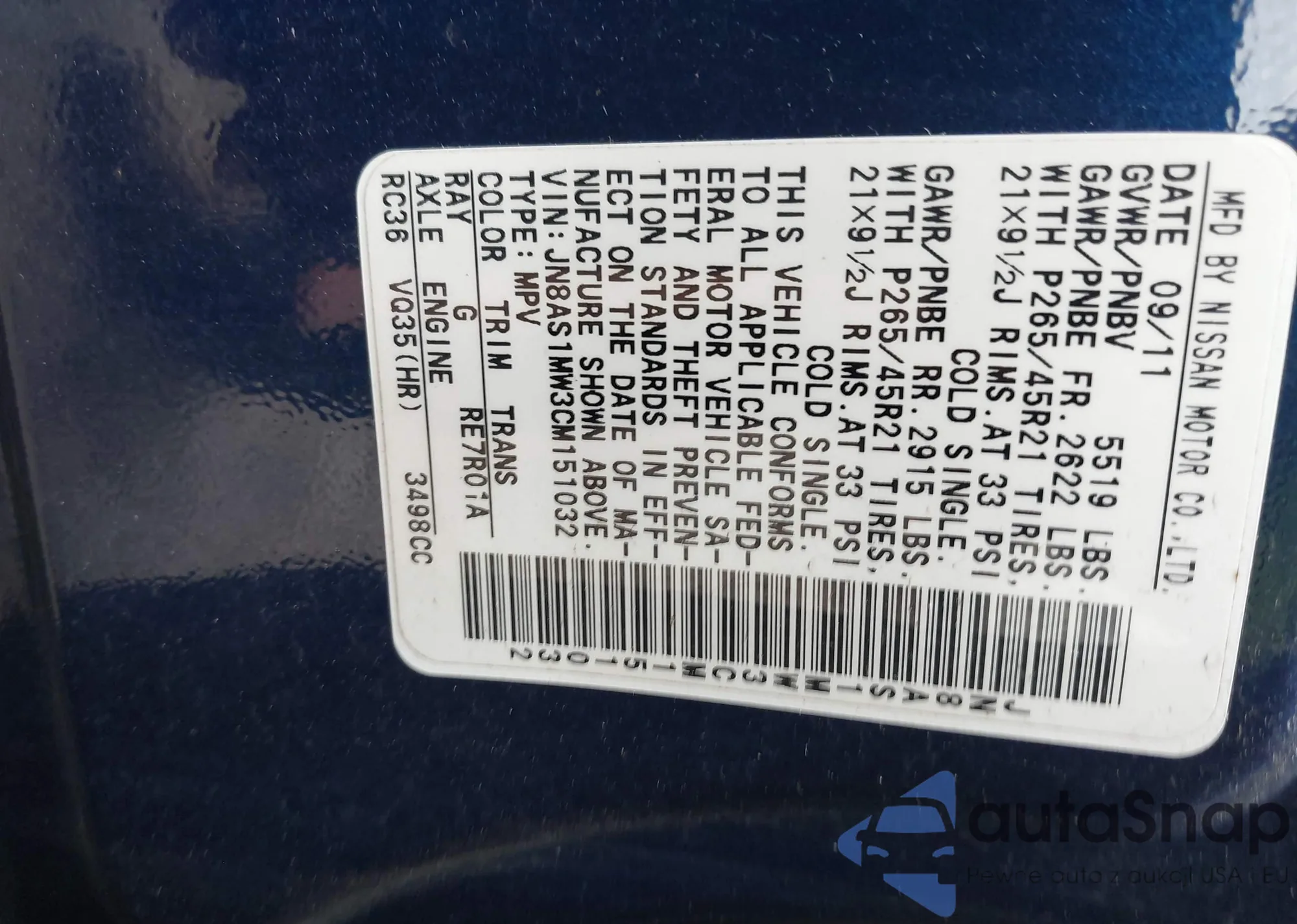 • VIN JN8AS1MW3CM151032
