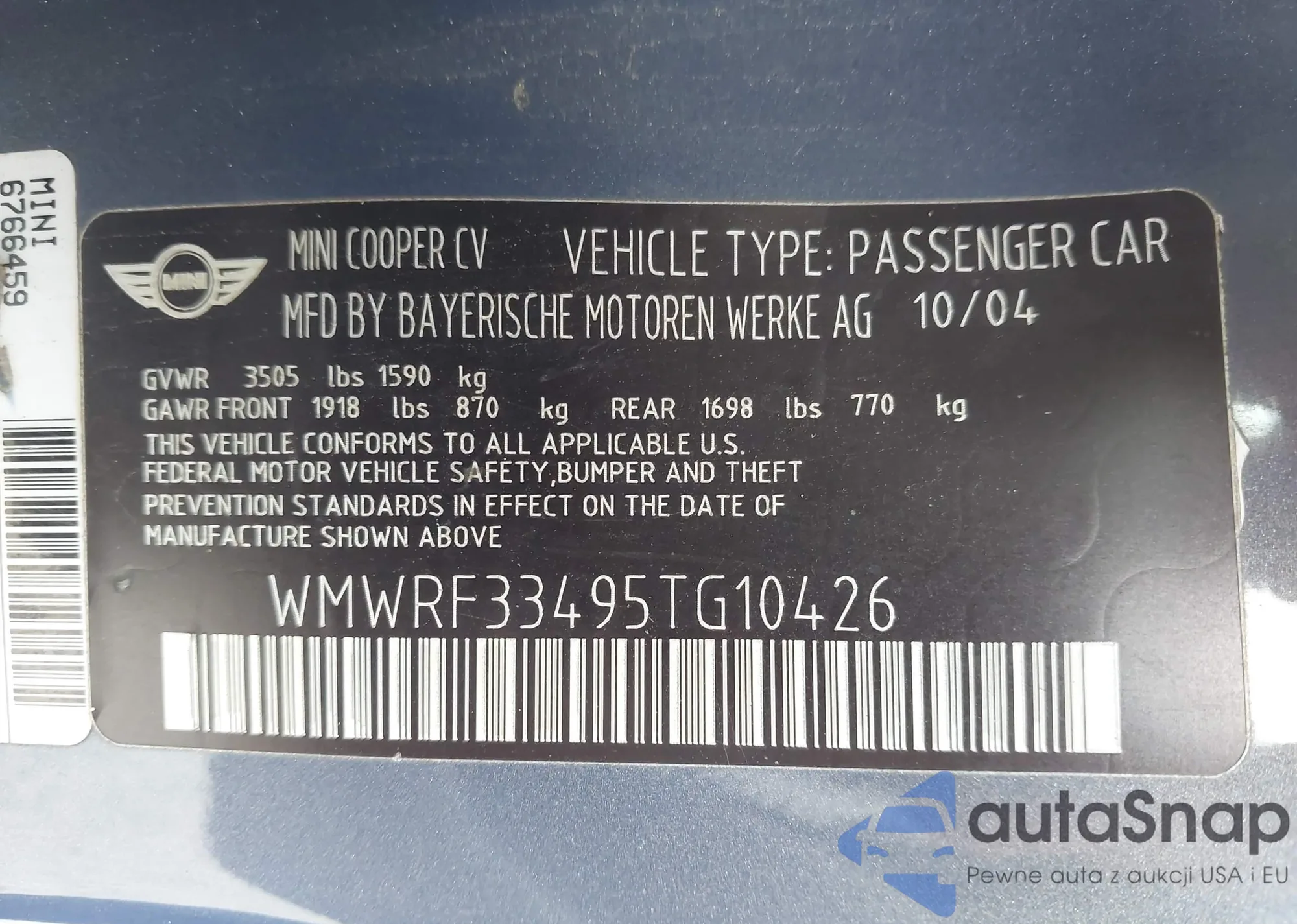 • VIN WMWRF33495TG10426