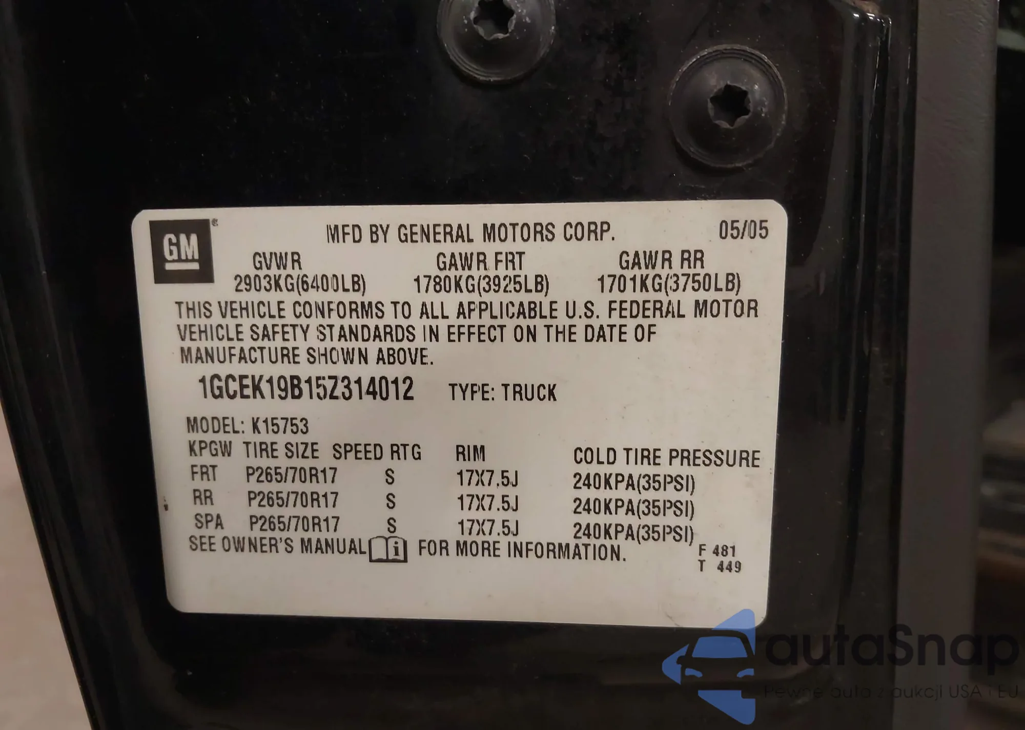 • VIN 1GCEK19B15Z314012