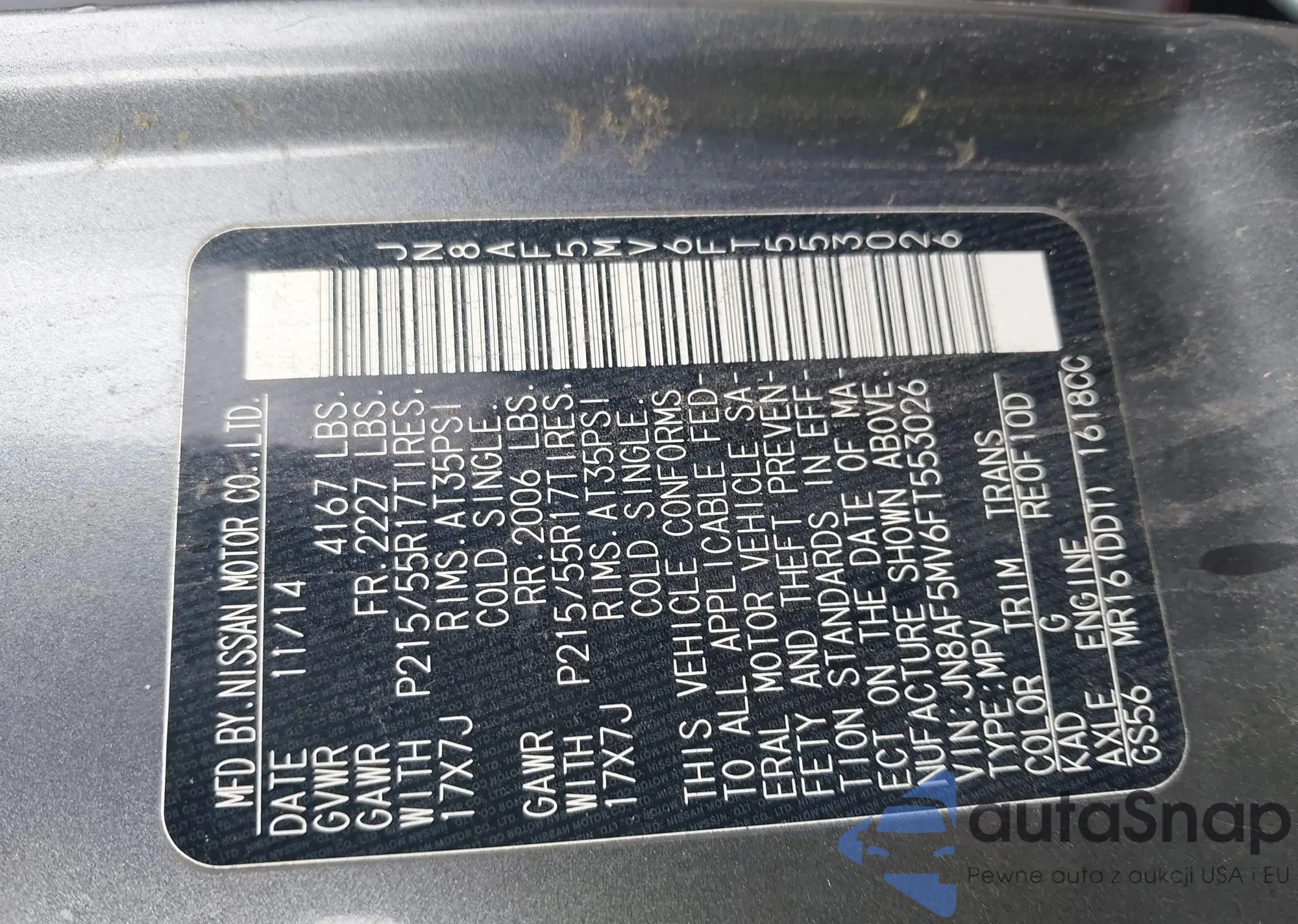 • VIN 5GTDN136068217429