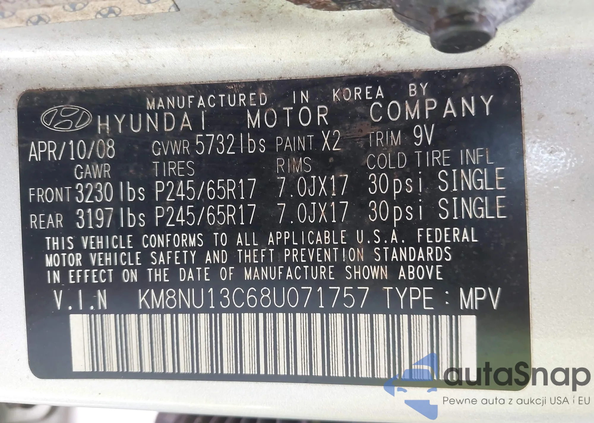 • VIN KMHDN46D24U858228