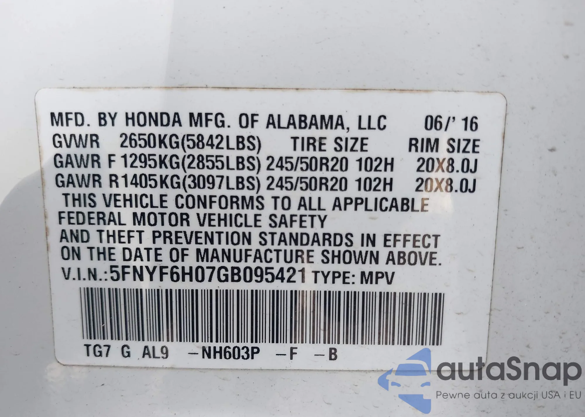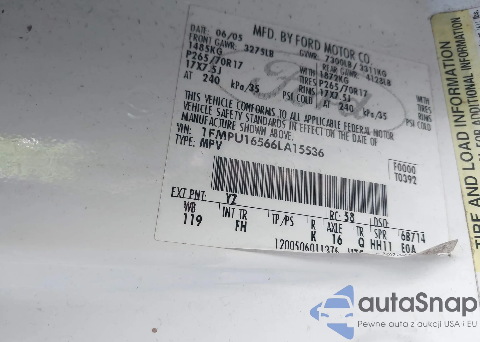 LOT: 43994339 VIN: 1FMPU16566LA15536
