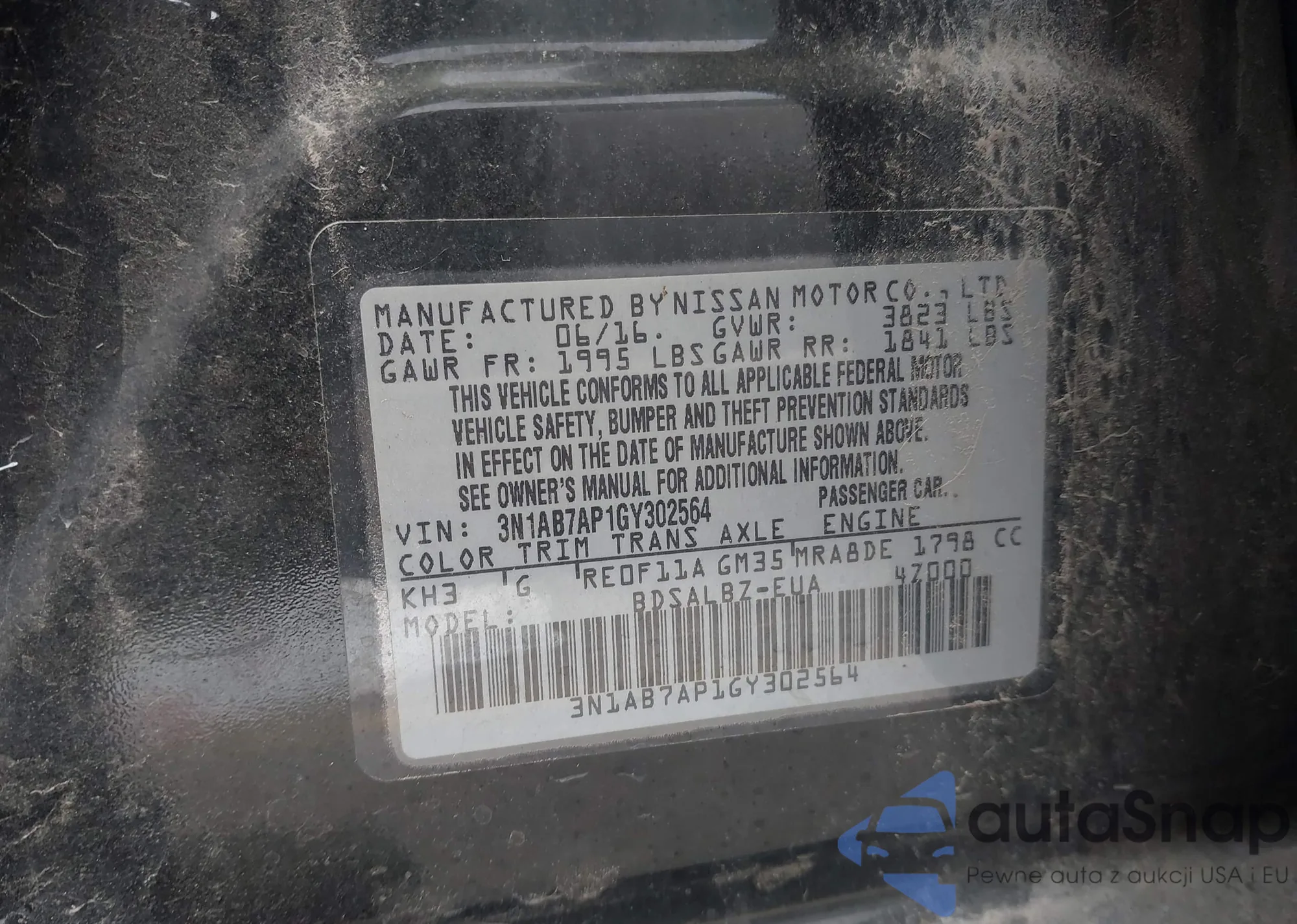 • VIN 3N1AB7AP1GY302564