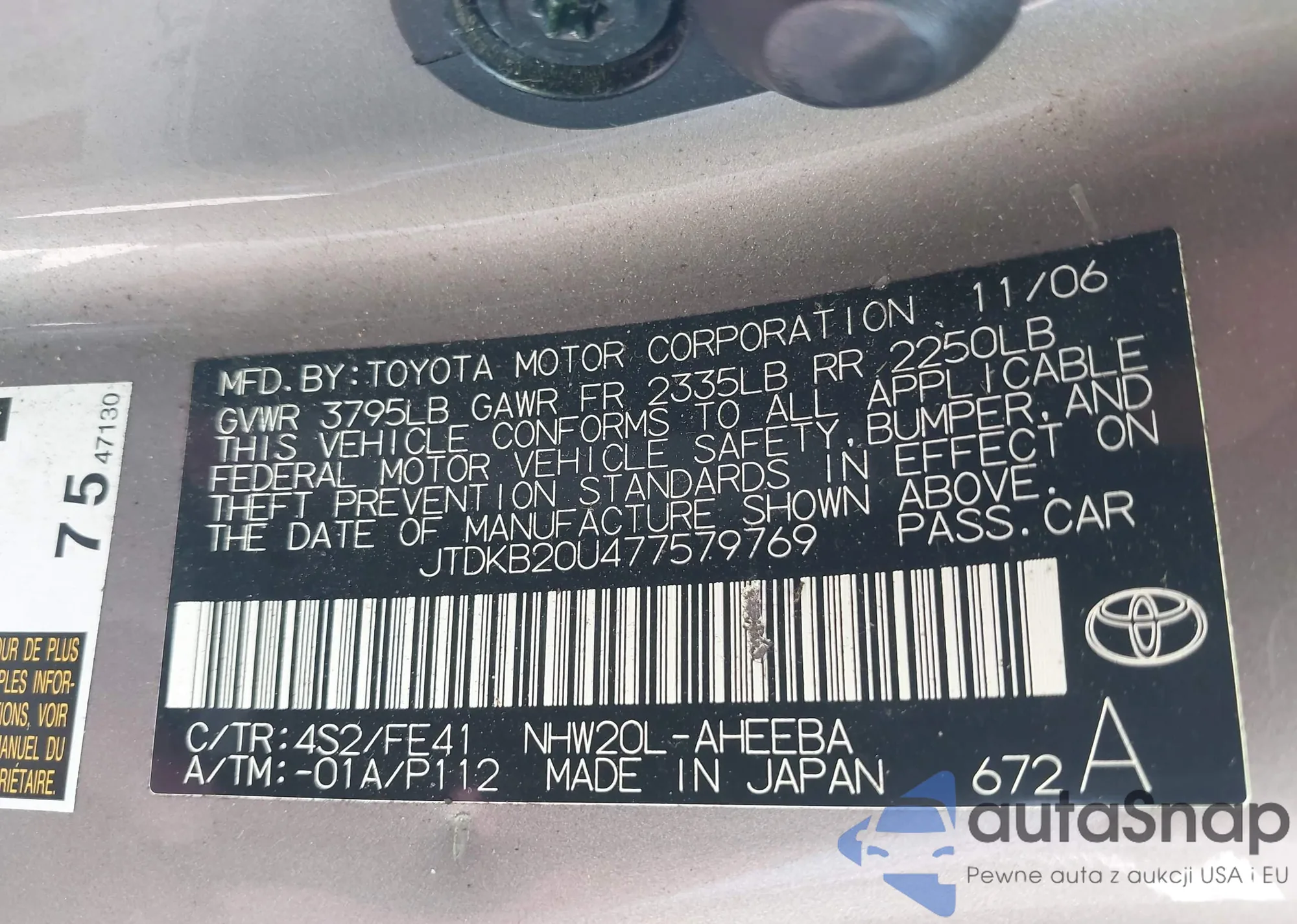 LOT: 43475703 VIN: JTDKB20U477579769