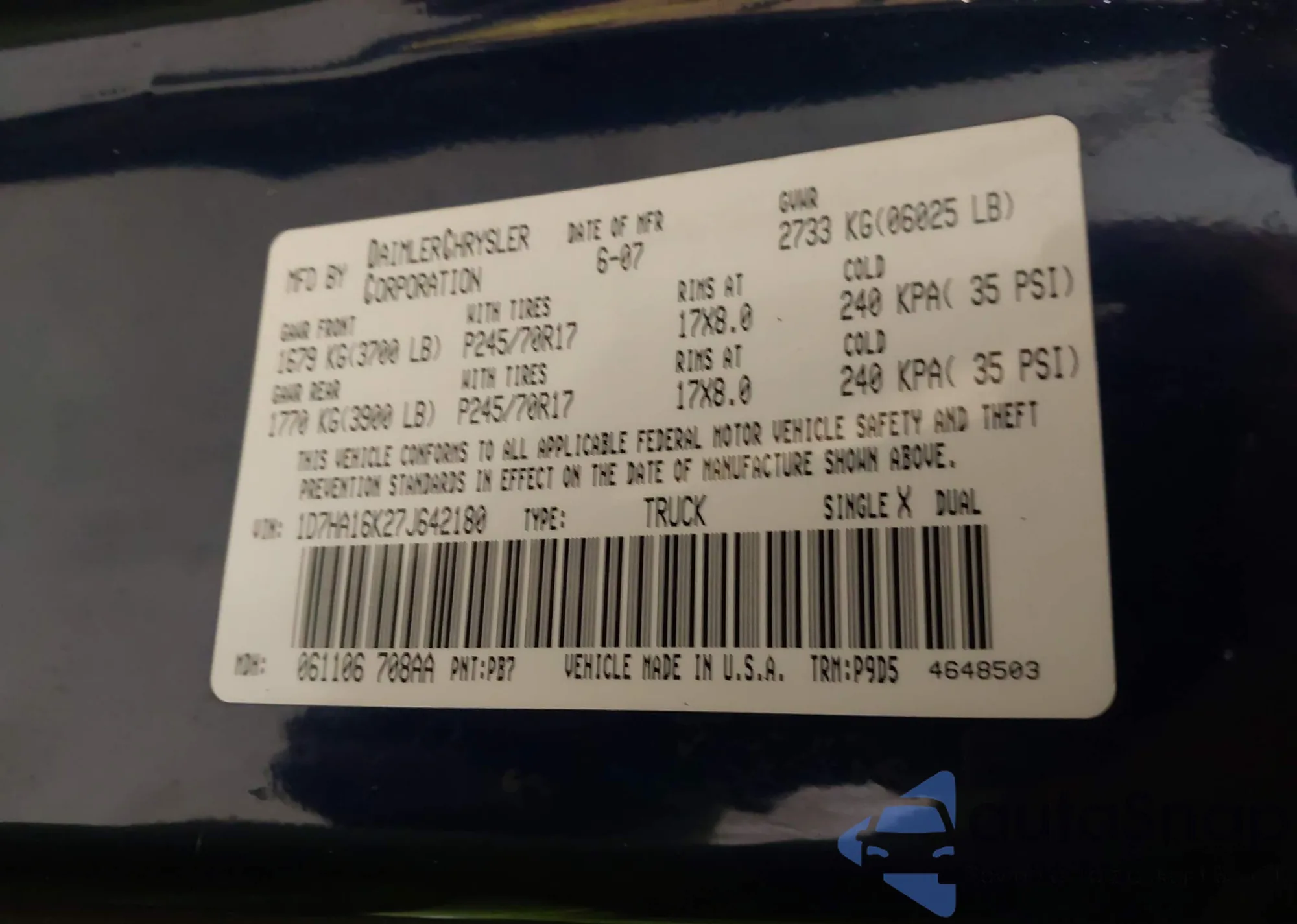 • VIN JTDKB20U477579769