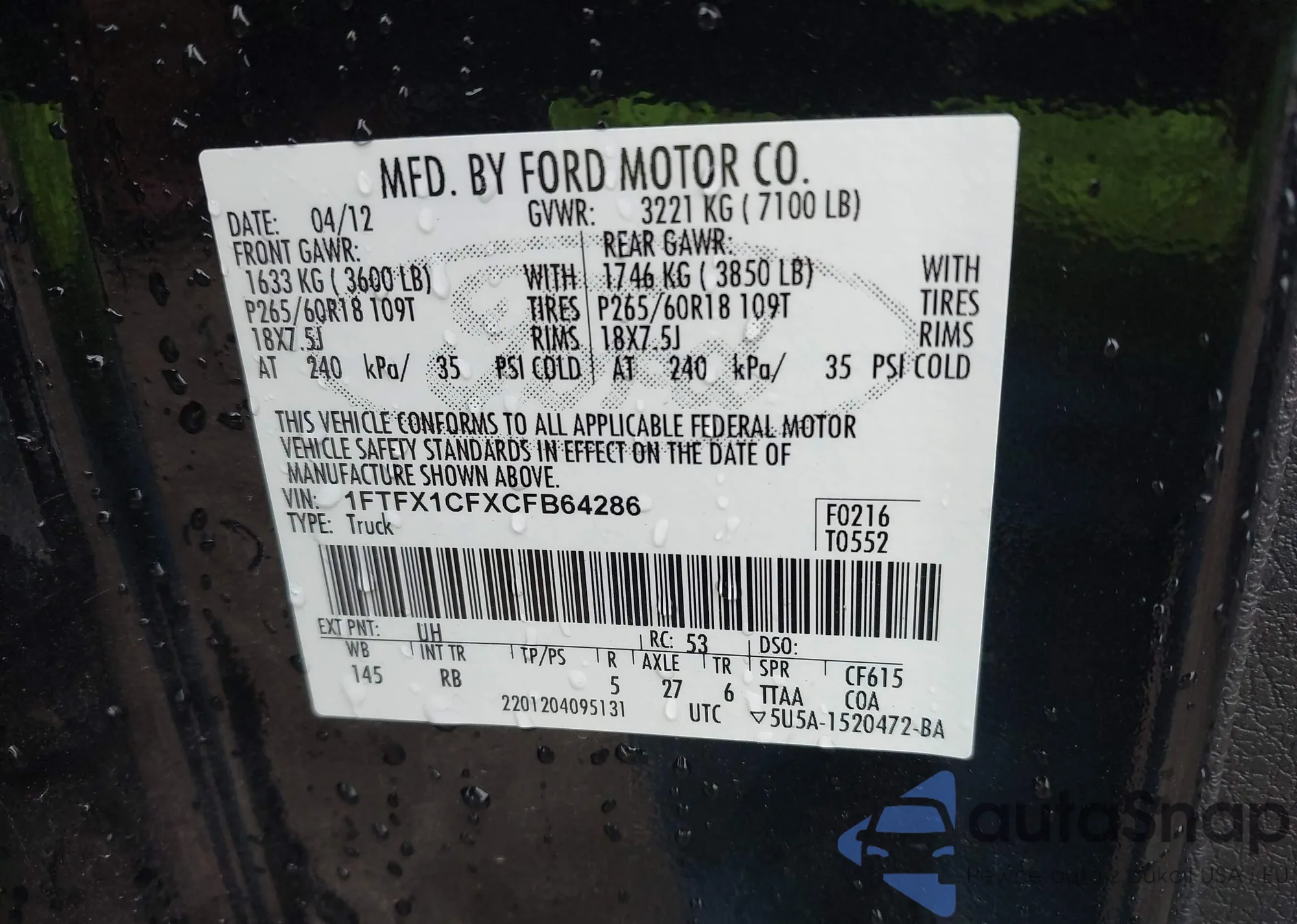 • VIN 1FTFX1CFXCFB64286