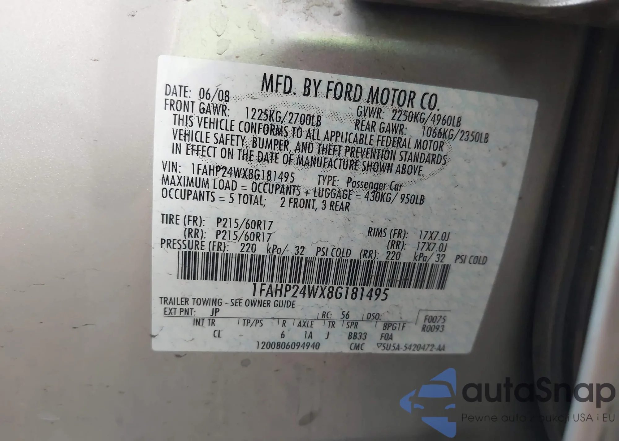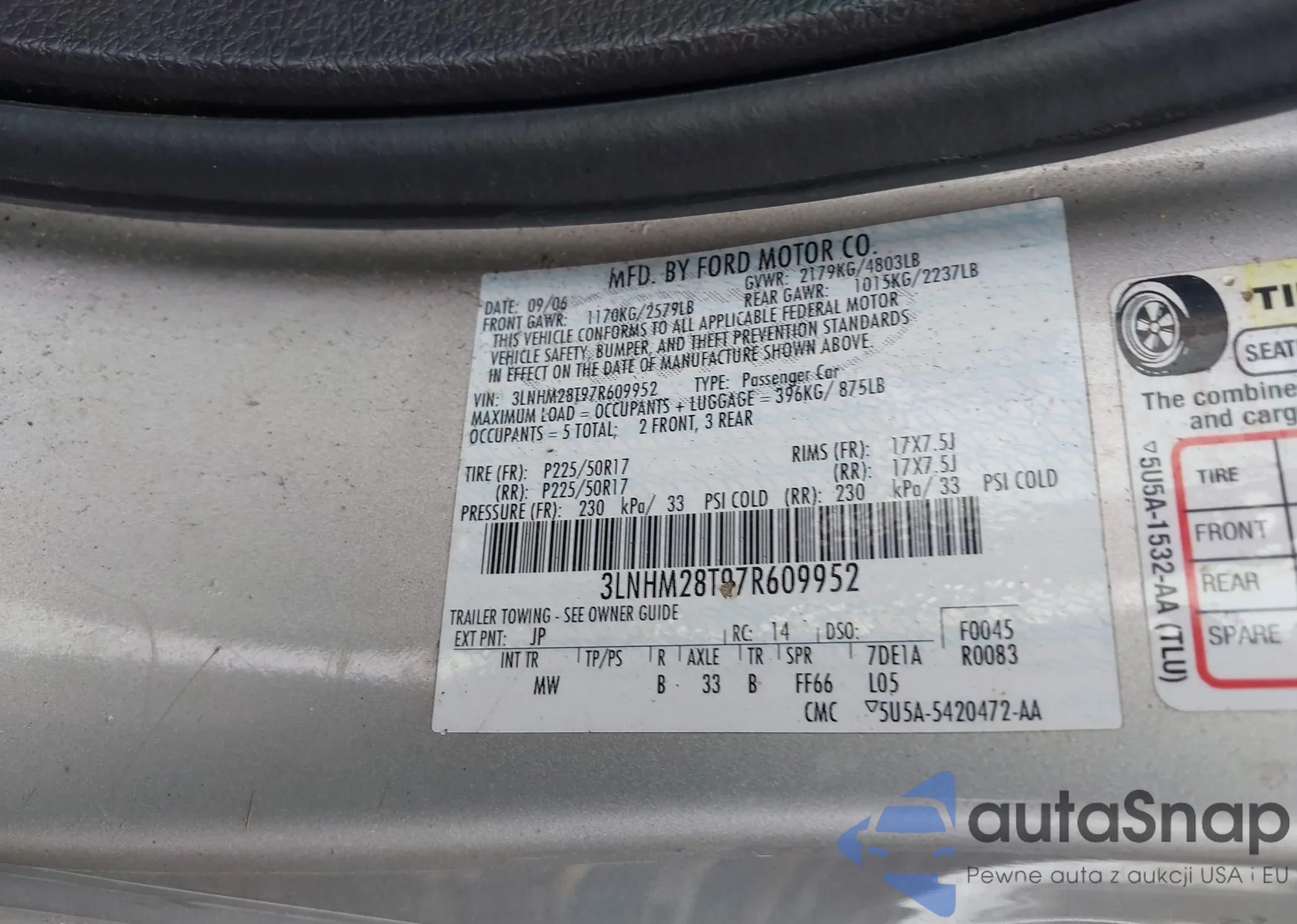 LOT: 43238100 VIN: 1HGCM56307A069616