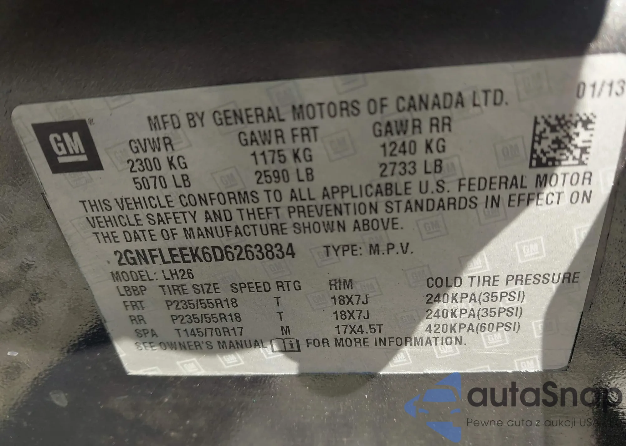 LOT: 43532613 VIN: 5FNRL38446B458013