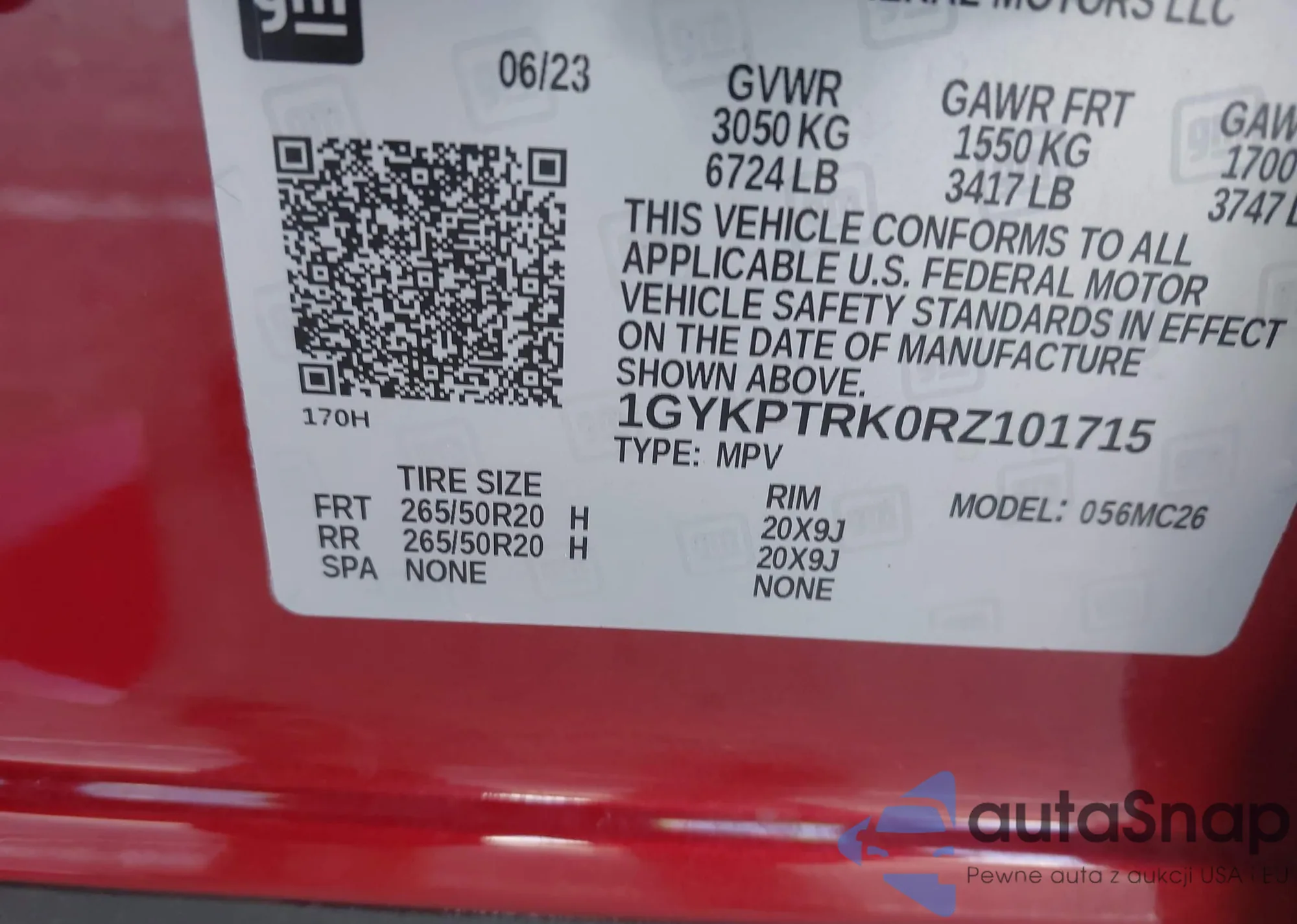 LOT: 43555731 VIN: 1GYKPTRK0RZ101715