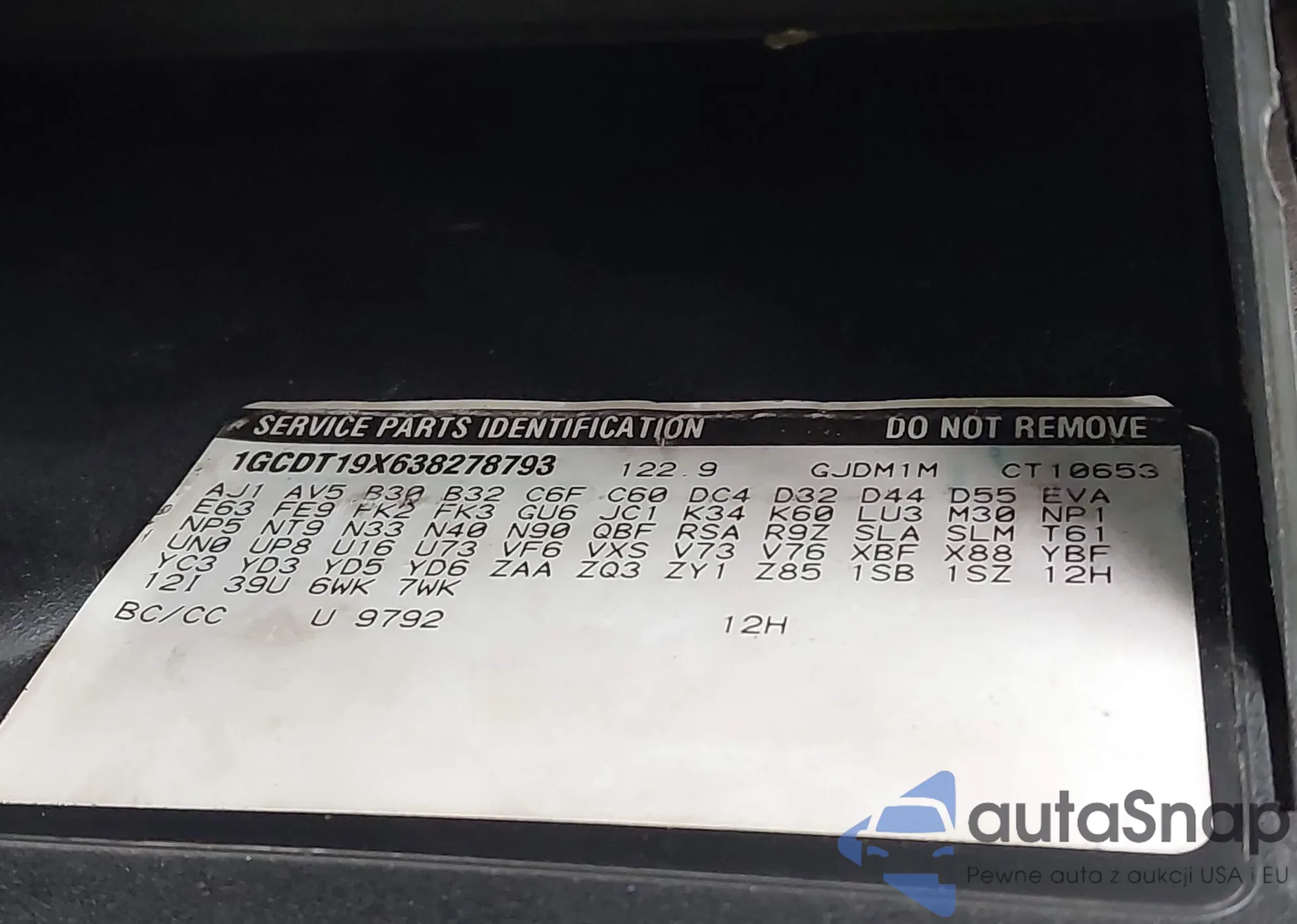 LOT: 43562083 VIN: 1GCDT19X638278793