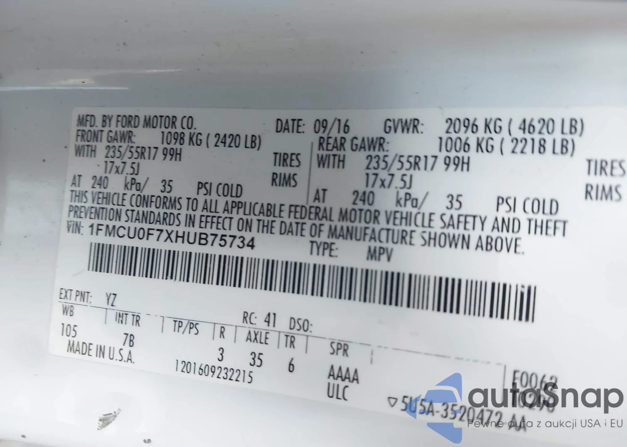 • VIN 1FMCU0F7XHUB75734