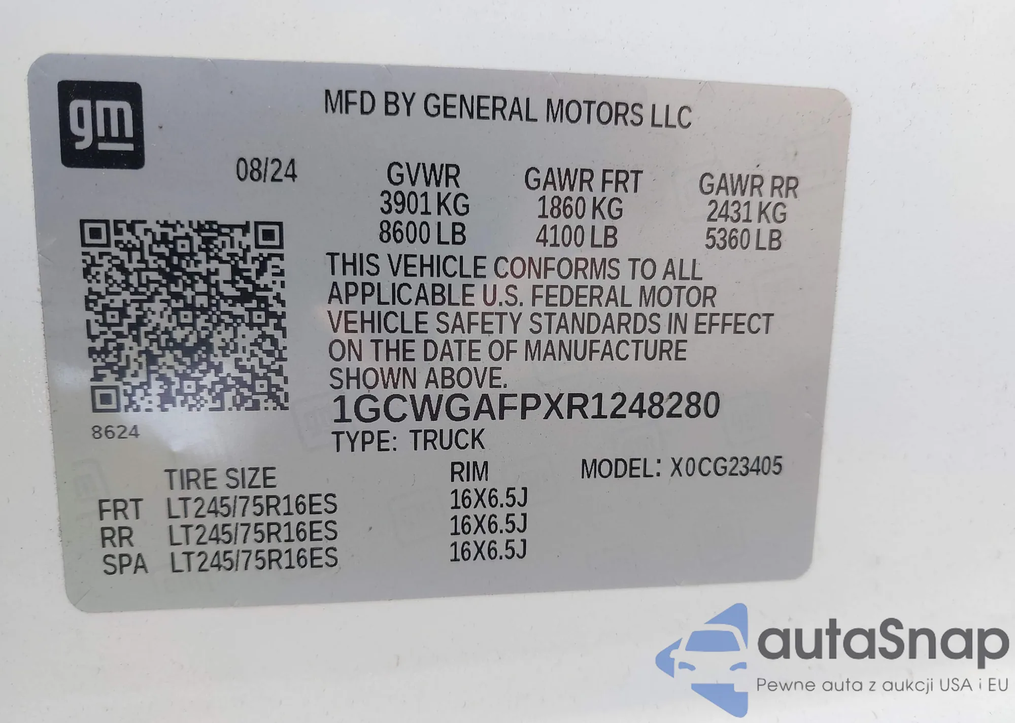 LOT: 43647533 VIN: 1GCWGAFPXR1248280