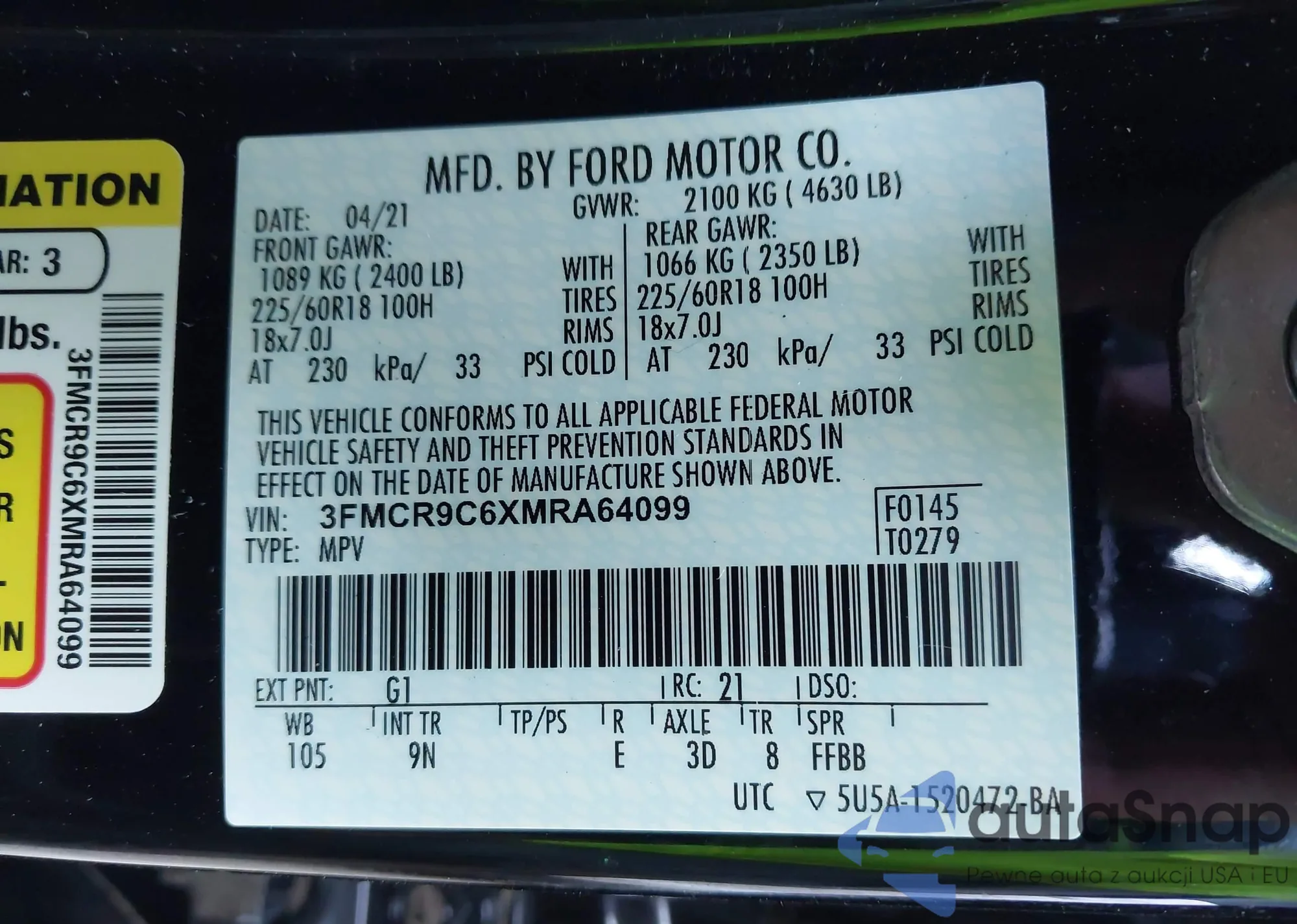 • VIN 3FMCR9C6XMRA64099