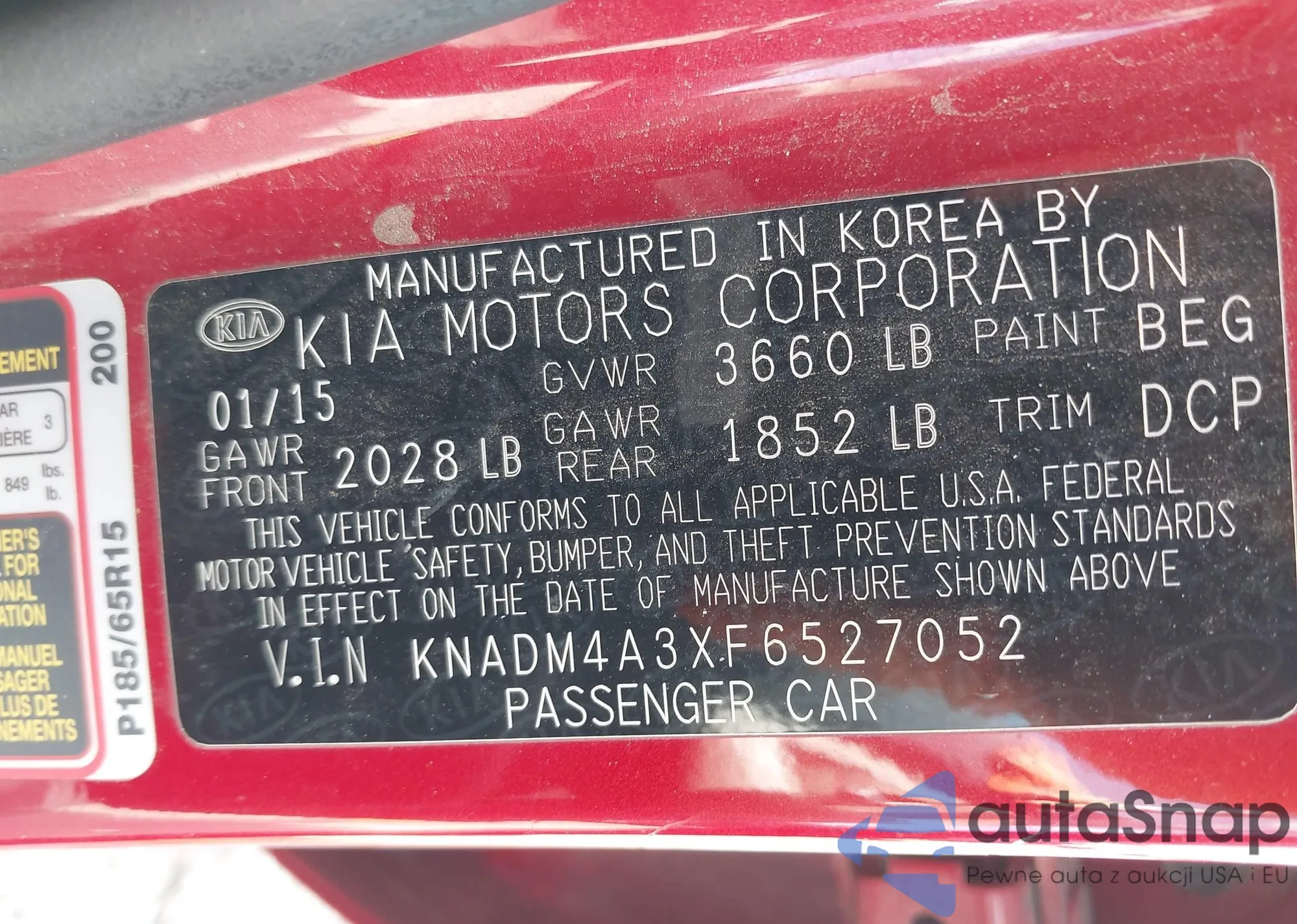 LOT: 43294179 VIN: KNADM4A3XF6527052