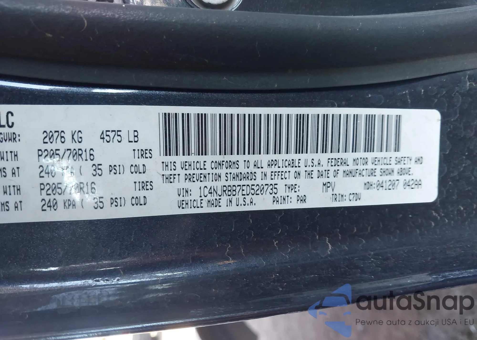 • VIN 1C4NJRBB7ED520735