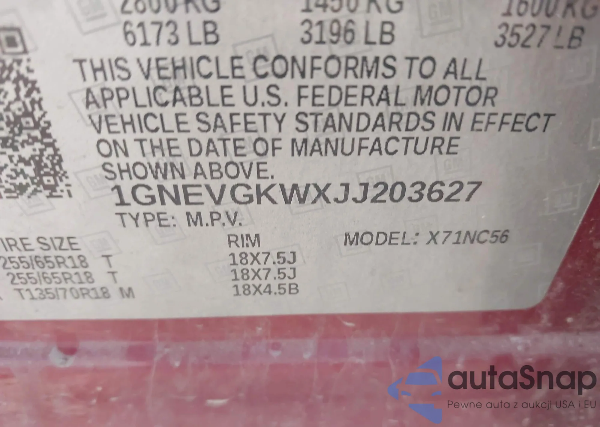 LOT: 43428981 VIN: 1GNEVGKWXJJ203627