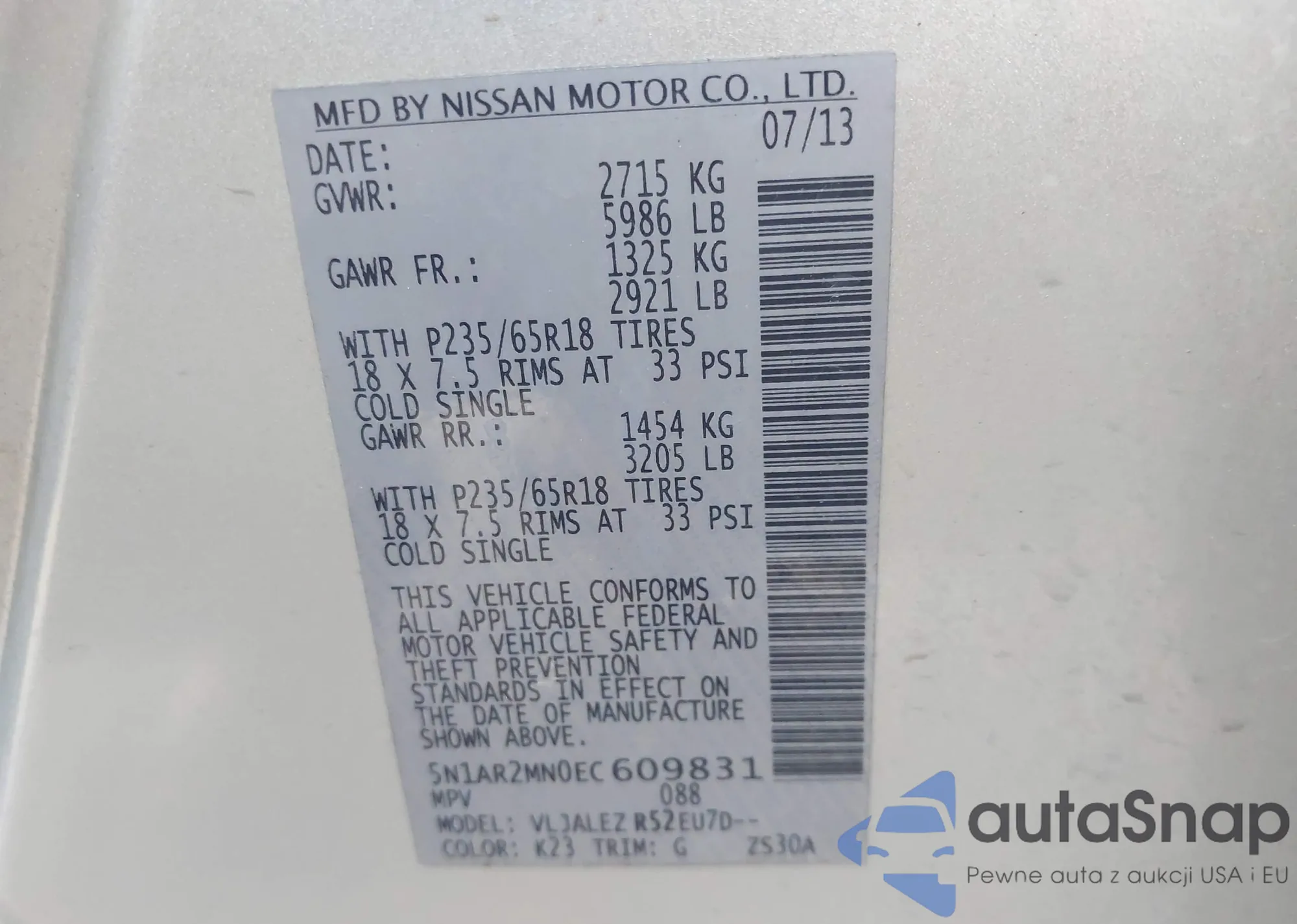 • VIN 5N1AR2MN0ECU09831