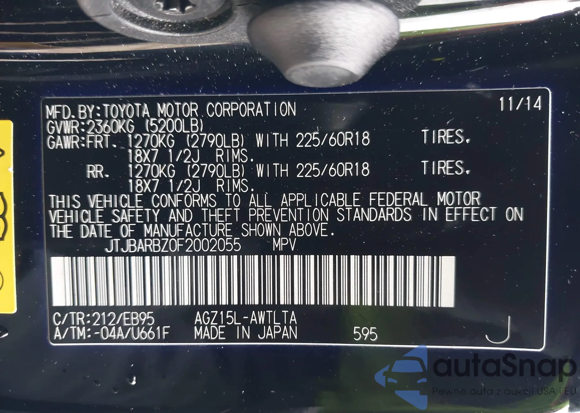 LOT: 43881273 VIN: JTJBARBZ0F2002055