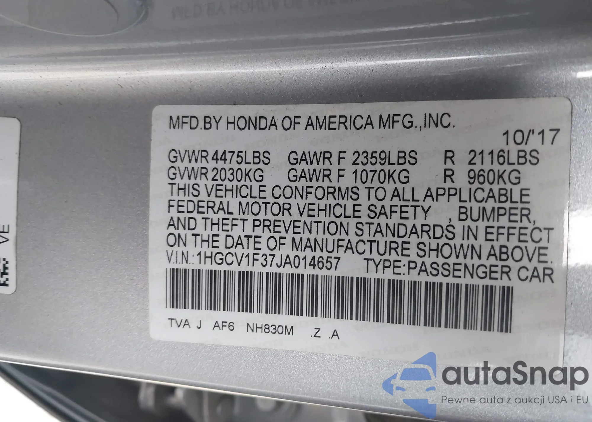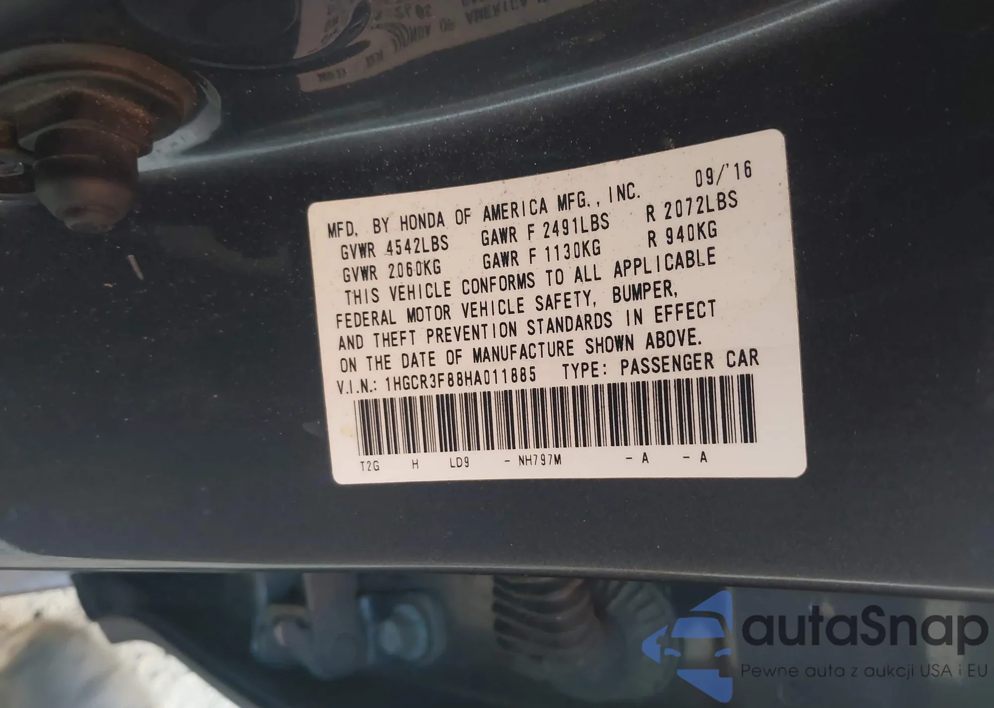2017 Honda Accord Ex-L V6 z USA, uszkodzony, nr VIN 1HGCR3F88HA011885