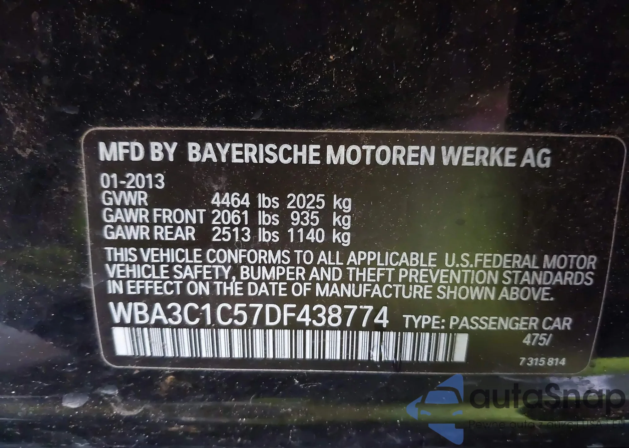 • VIN WBA3C1C57DF438774