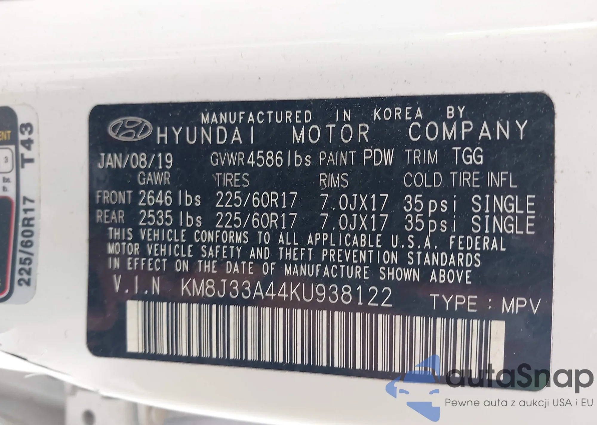 • VIN KM8J33A44KU938122